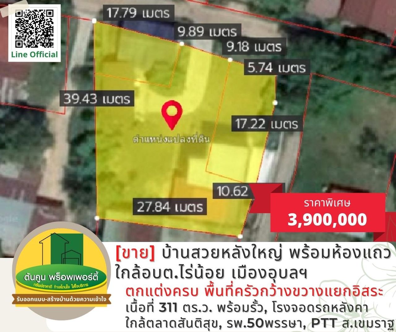พิเศษเพียง 3,900,000 บาท (ผู้ซื้อรับผิดชอบค่าใช้จ่ายที่สนง.ที่ดิน)