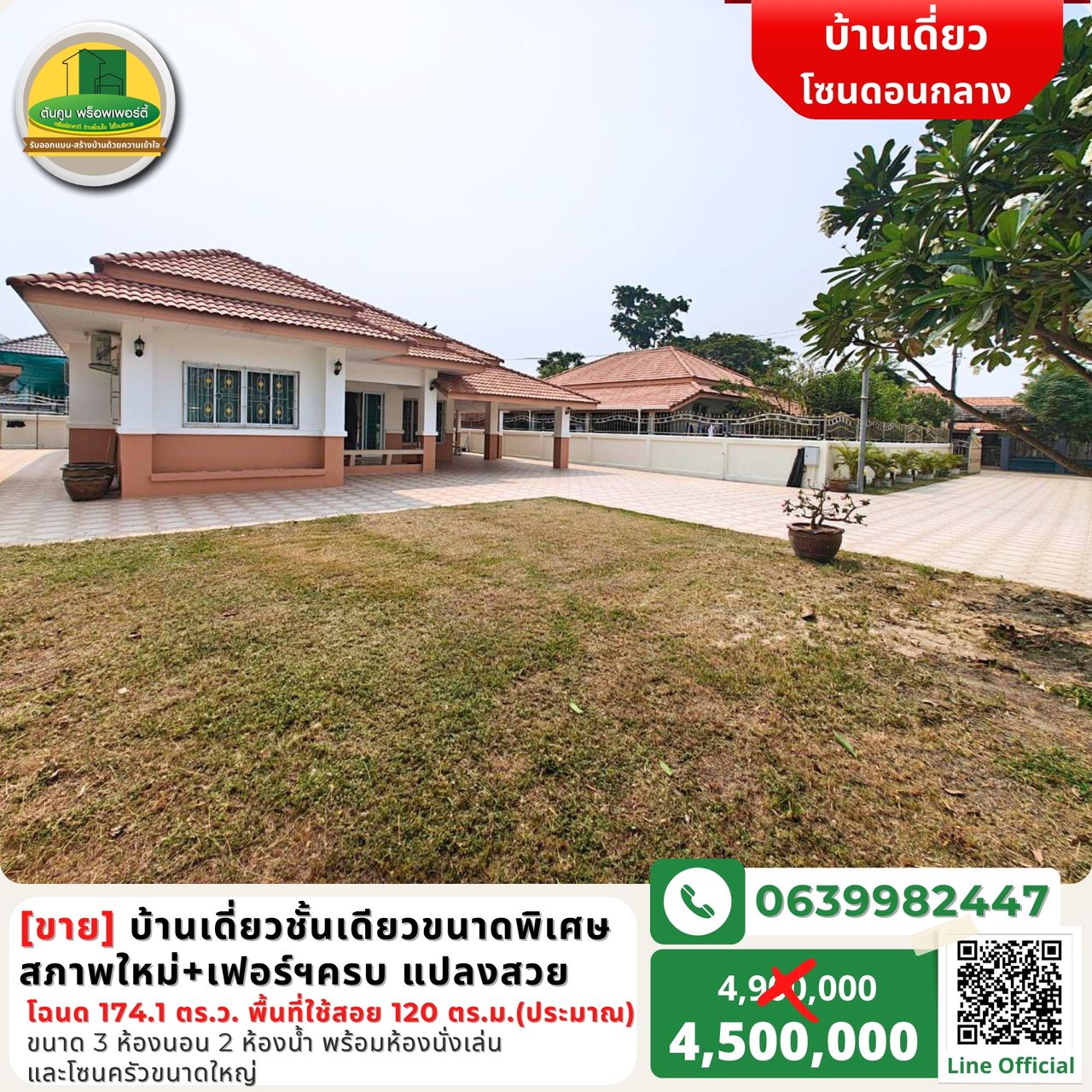 [ขาย] บ้านเดี่ยวชั้นเดียวขนาดพิเศษบนเนื้อที่เกือบ 2 งาน สภาพใหม่เฟอร์ฯครบ ในโครงการหมู่บ้าน โซนดอนกลาง