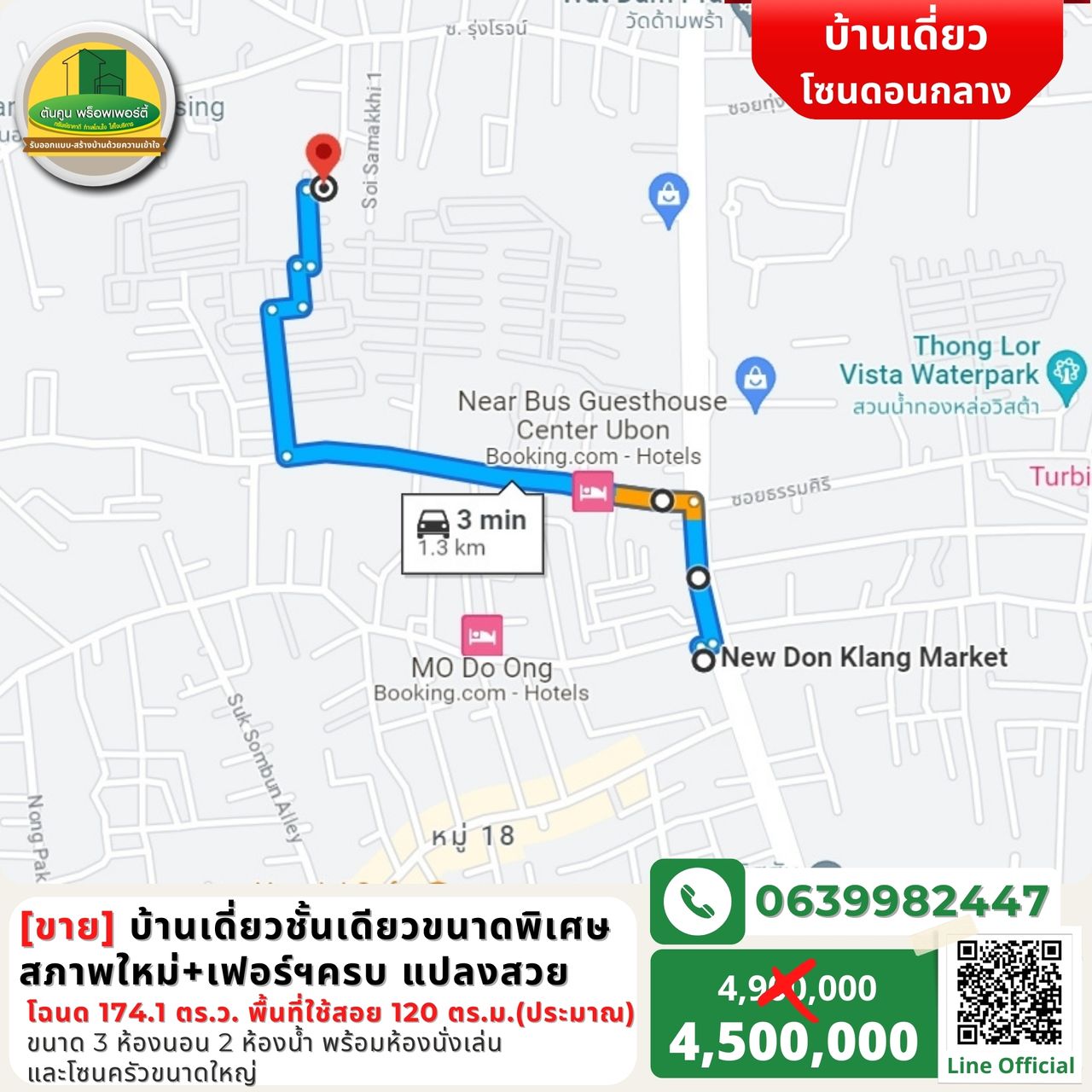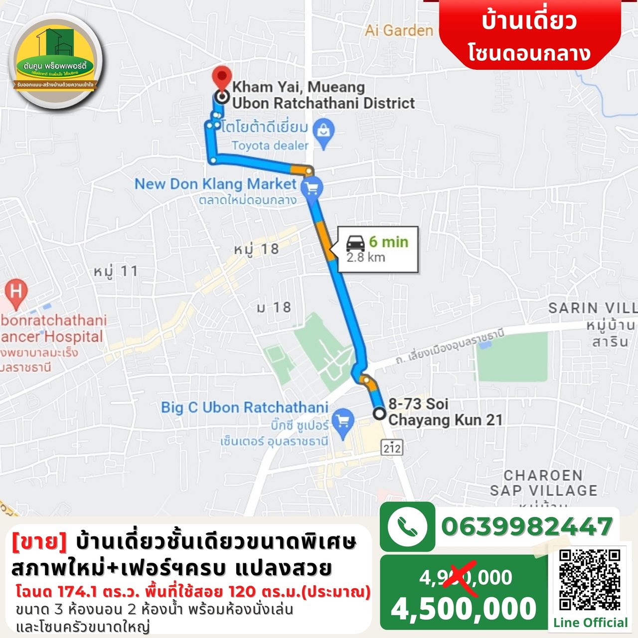 [ขาย] ลดพิเศษ! บ้านชั้นเดียวในโครงการขนาดพิเศษเนื้อที่เกือบ 2 งาน สภาพใหม่เฟอร์ฯครบ เดินทางสะดวก โซนดอนกลาง ชยางกูร ฝั่งห้วยคุ้ม คลังอาวุธ - เมืองอุบลราชธานี - ขามใหญ่
