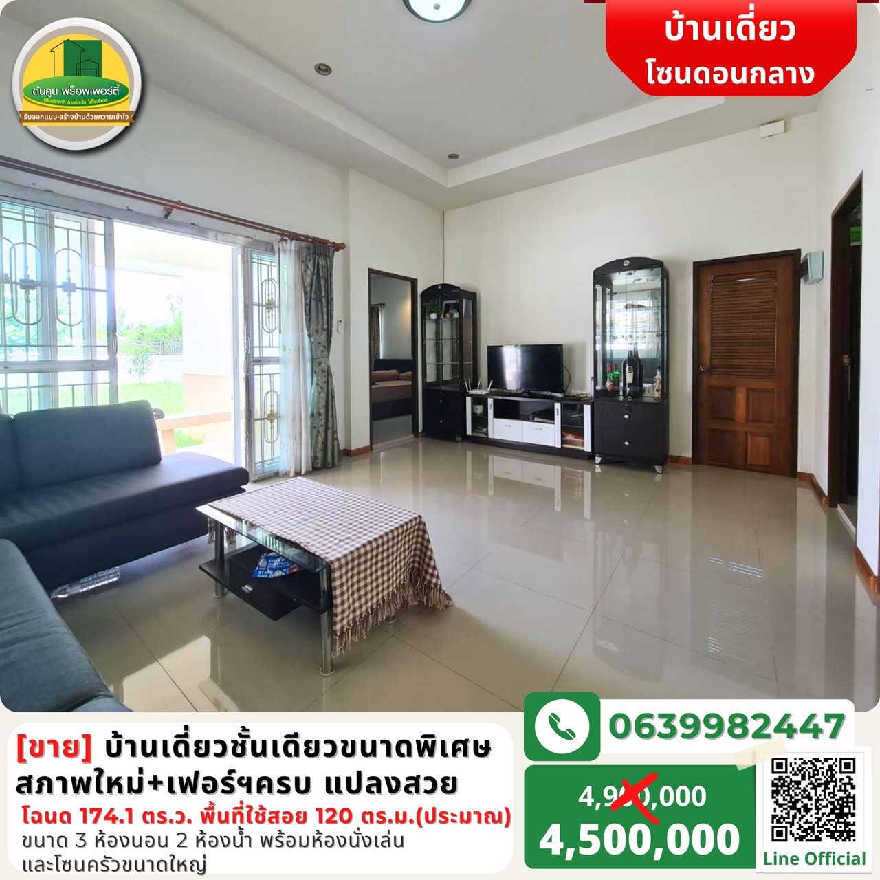 [ขาย] ลดพิเศษ! บ้านชั้นเดียวในโครงการขนาดพิเศษเนื้อที่เกือบ 2 งาน สภาพใหม่เฟอร์ฯครบ เดินทางสะดวก โซนดอนกลาง