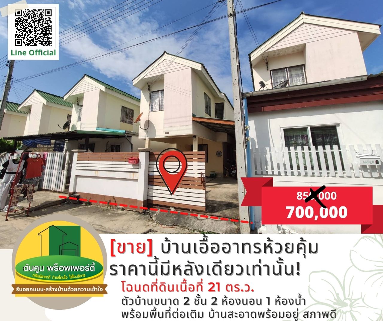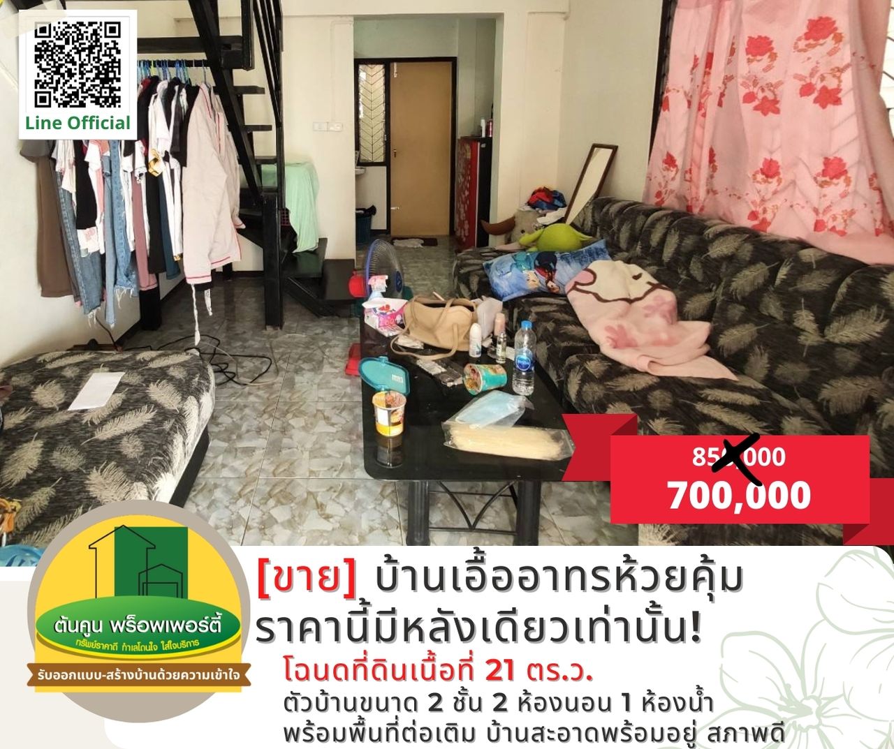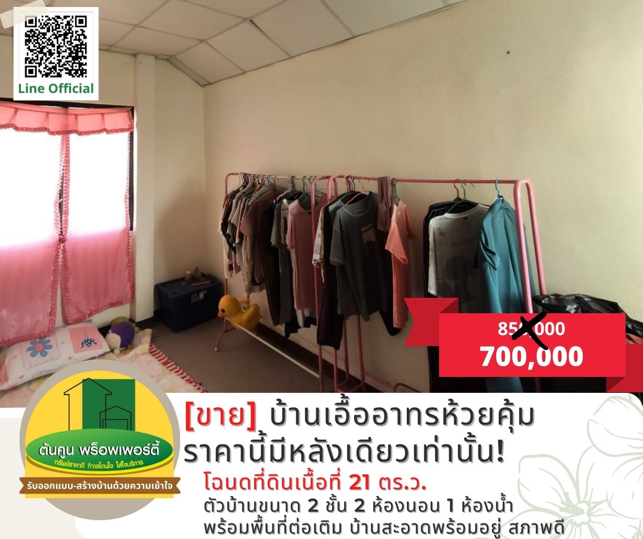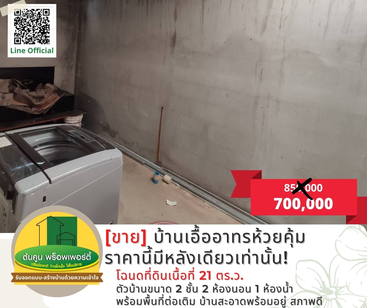 + ตัวบ้านขนาด 2 ชั้น 2 ห้องนอน 1 ห้องน้ำ พร้อมพื้นที่ต่อเติม