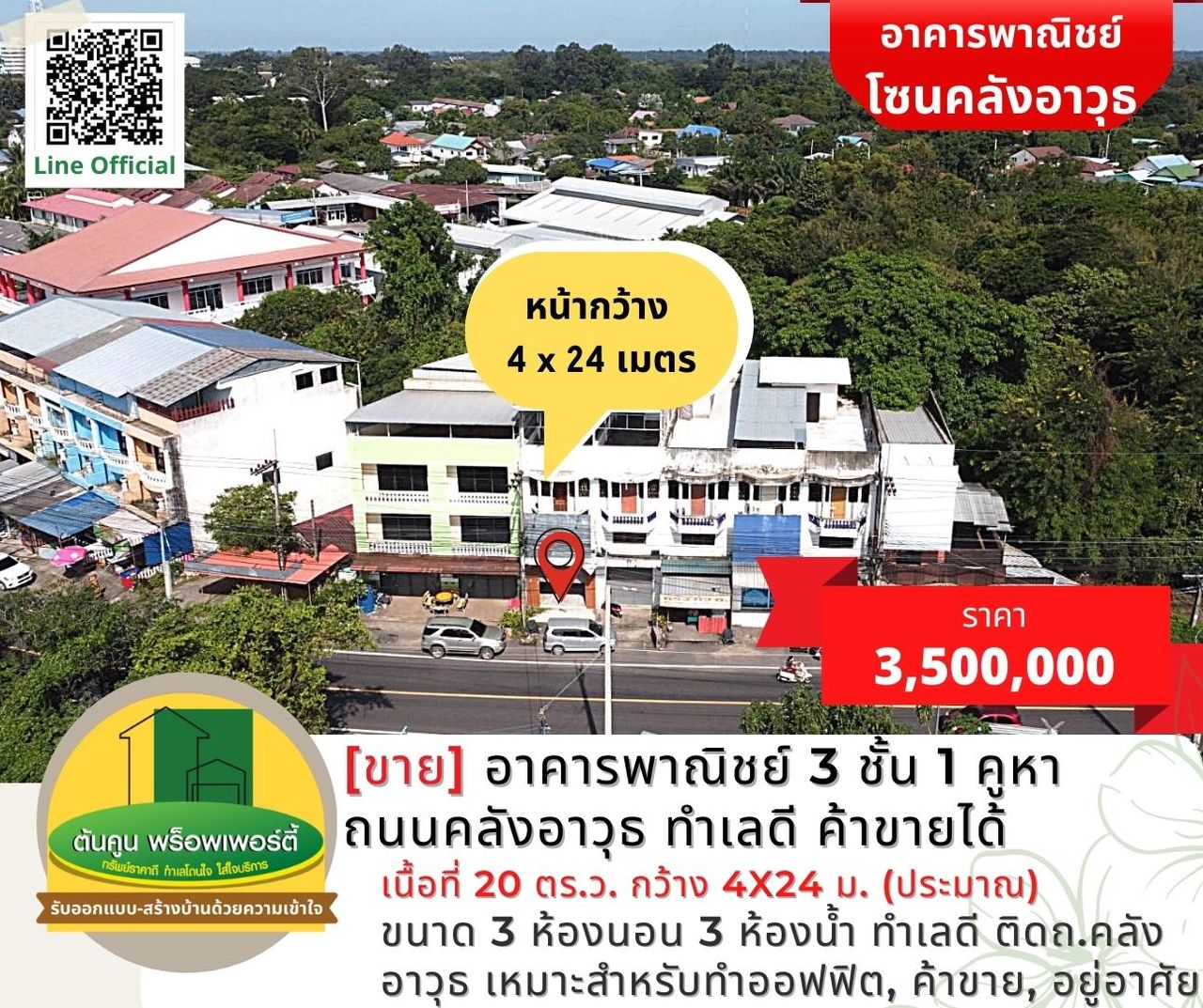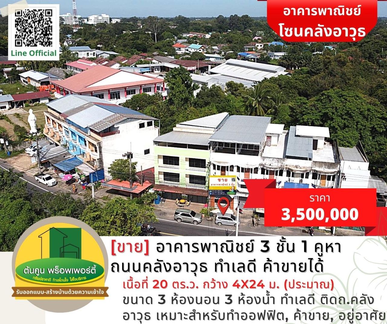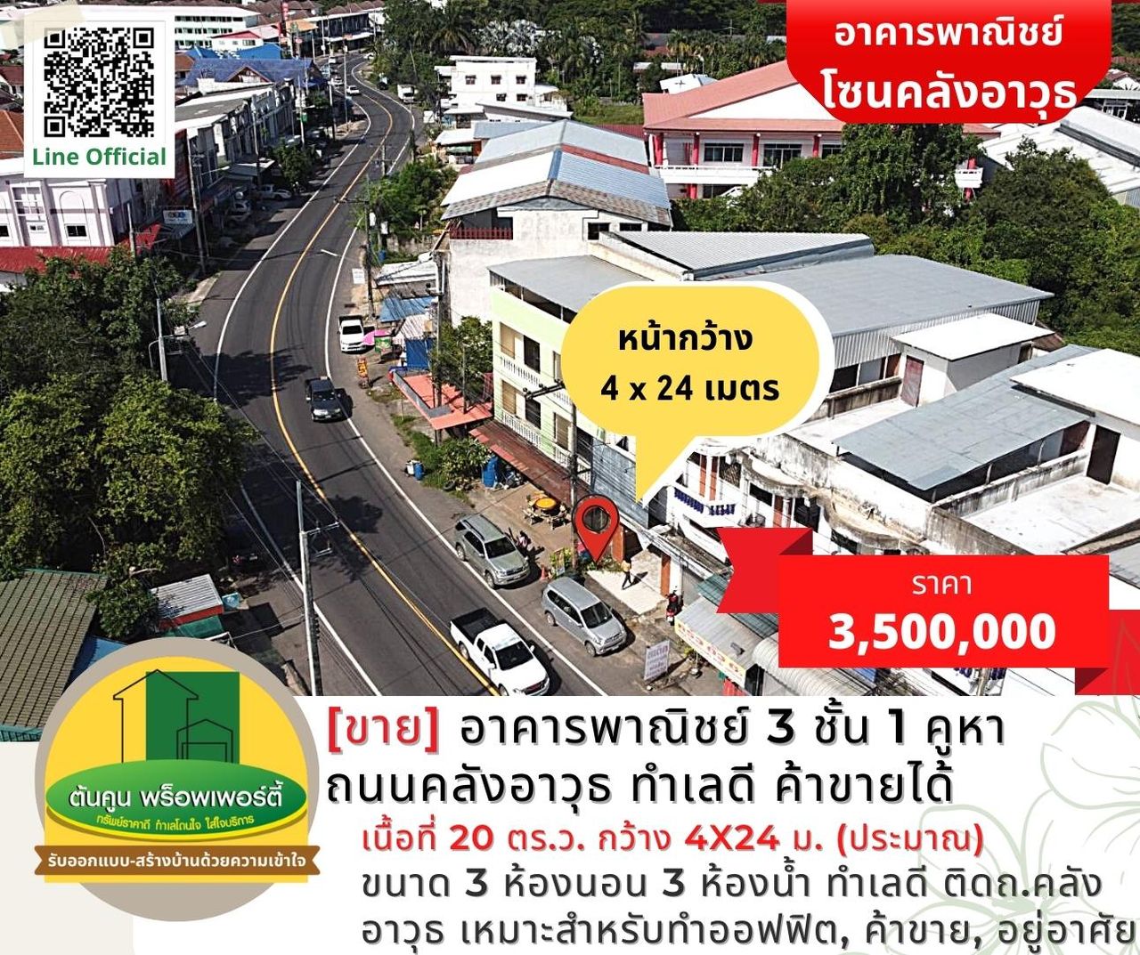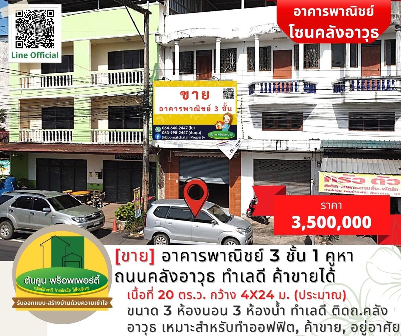 [ขาย] อาคารพาณิชย์ 3 ชั้น 1 คูหา ถนนคลังอาวุธ ทำเลดี ค้าขายได้ เดินทางสะดวก ในเมืองอุบล