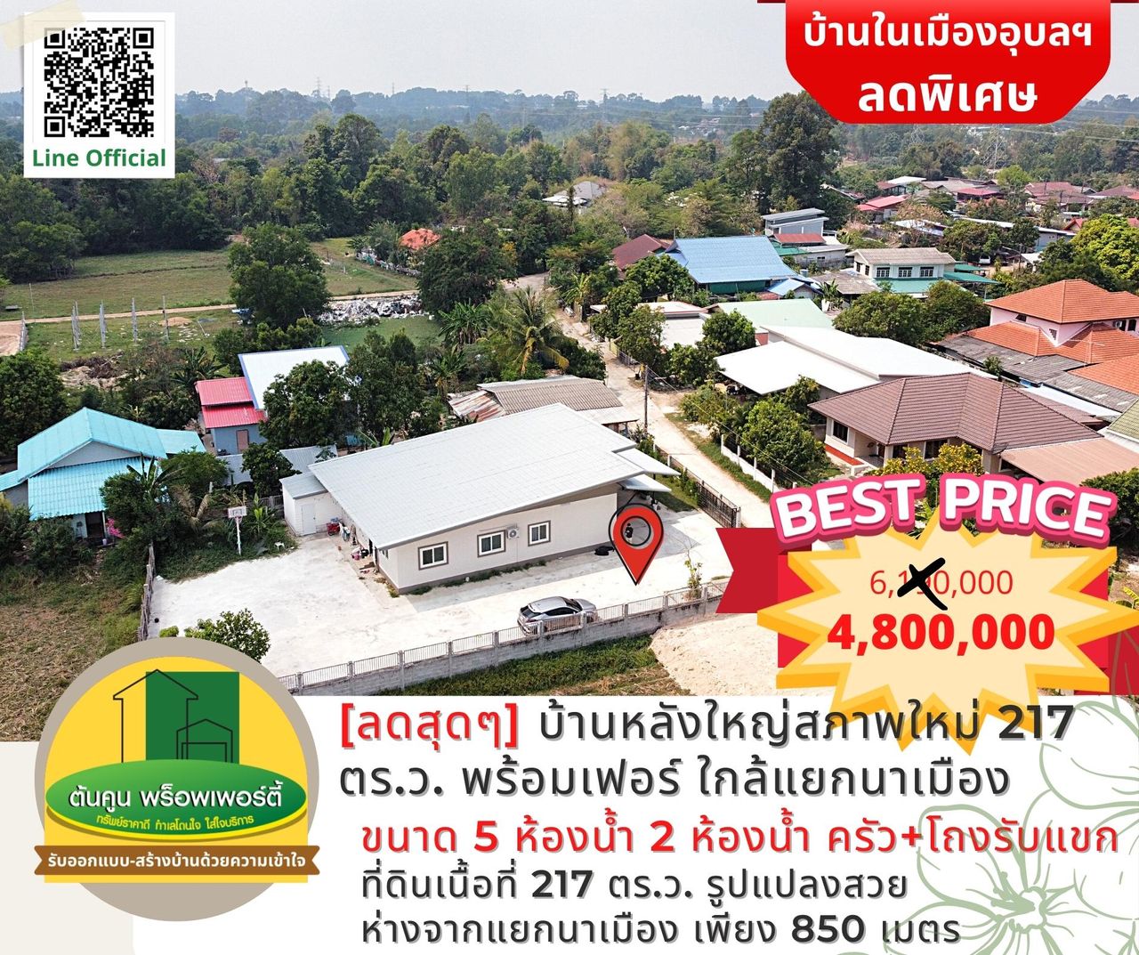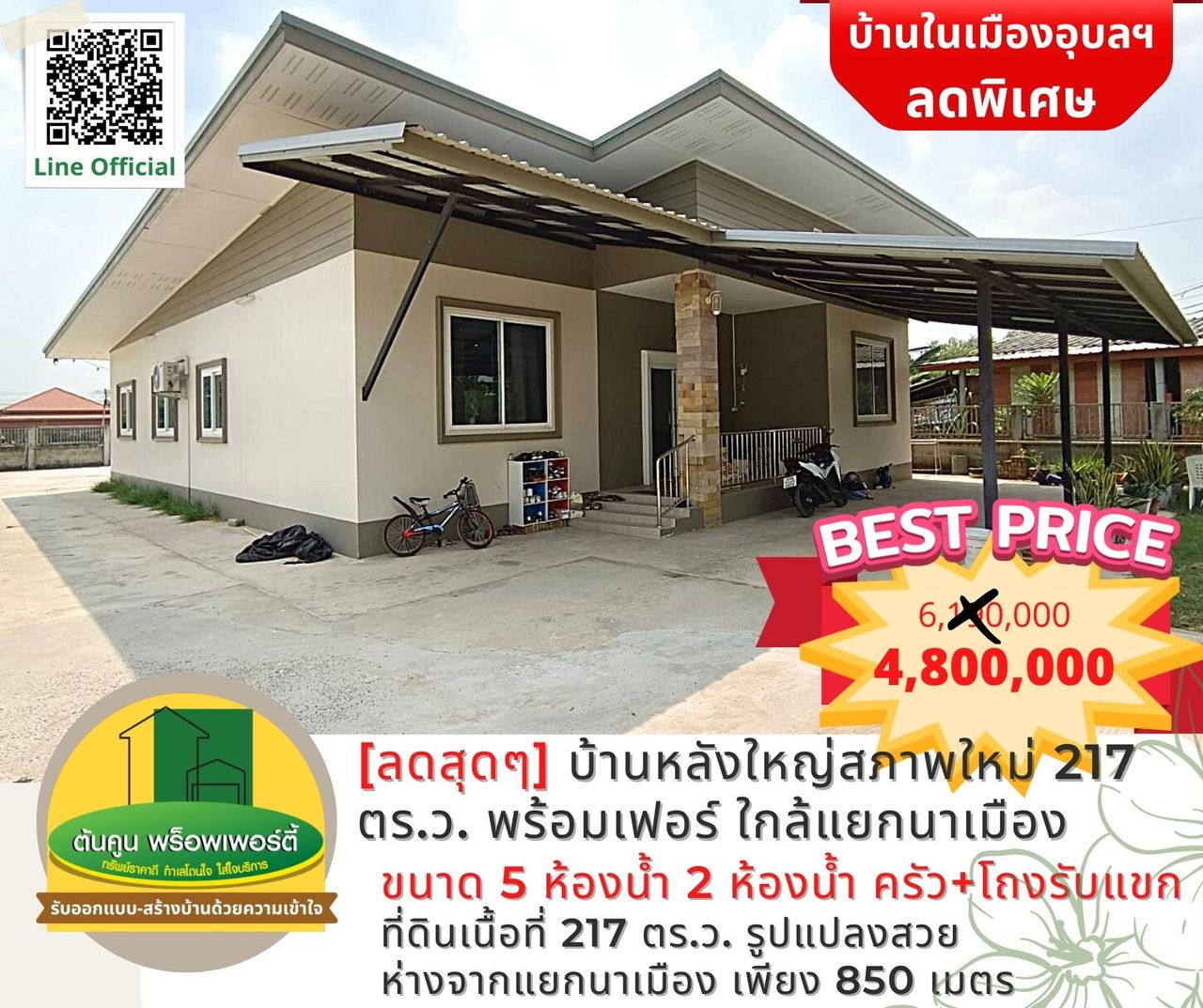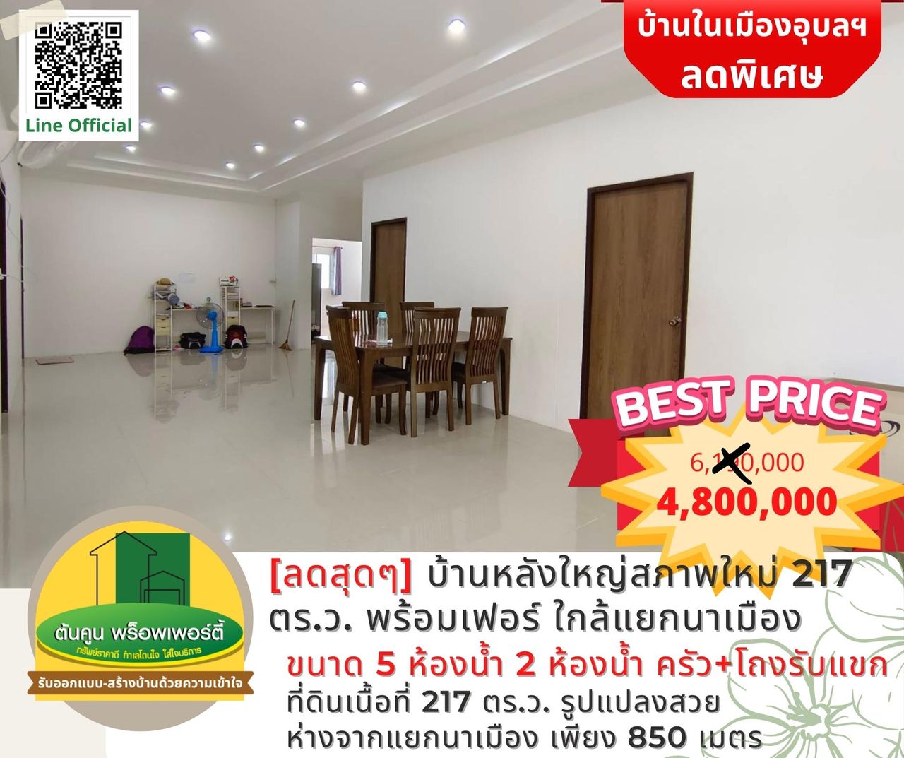 [ลดพิเศษ] ขายด่วน! บ้านสภาพใหม่หลังใหญ่ขนาด 5 ห้องนอน พร้อมที่ดิน 217 ตร.ว. แถมเฟอร์และแอร์ 4 เครื่อง ใกล้แยกนาเมือง เมืองอุบลฯ