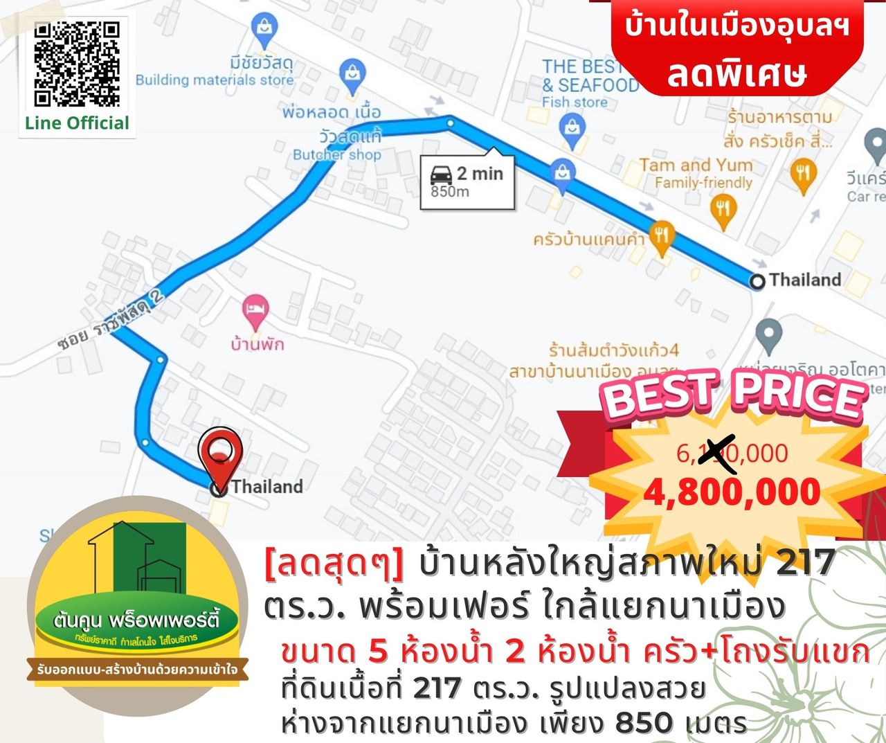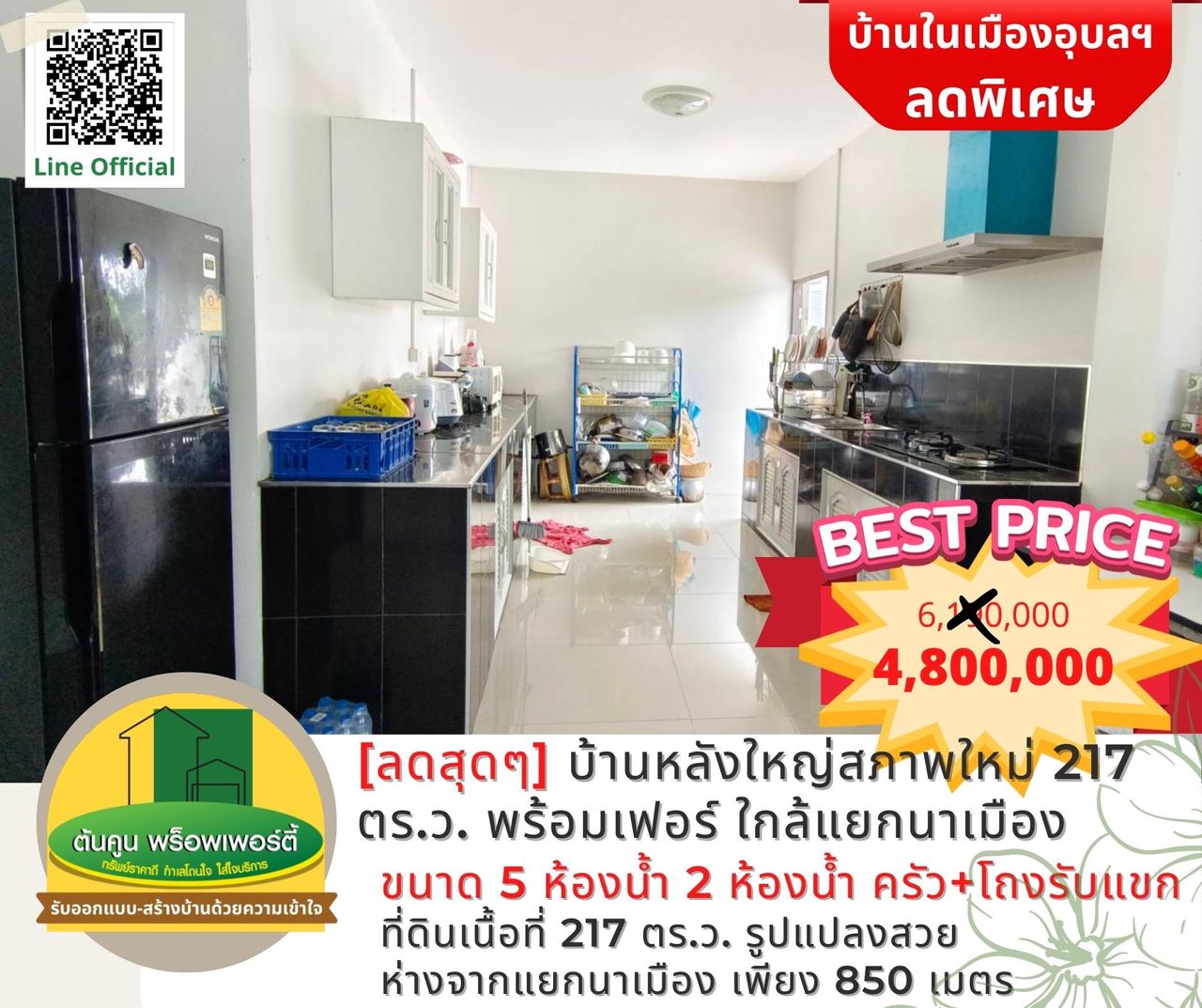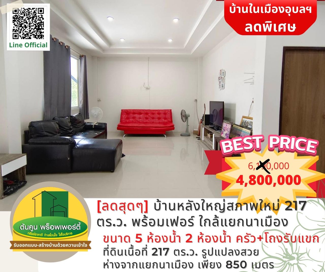 [ลดพิเศษ] ขายด่วน! บ้านสภาพใหม่หลังใหญ่ขนาด 5 ห้องนอน พร้อมที่ดิน 217 ตร.ว. แถมเฟอร์และแอร์ 4 เครื่อง ใกล้แยกนาเมือง เมืองอุบลฯ