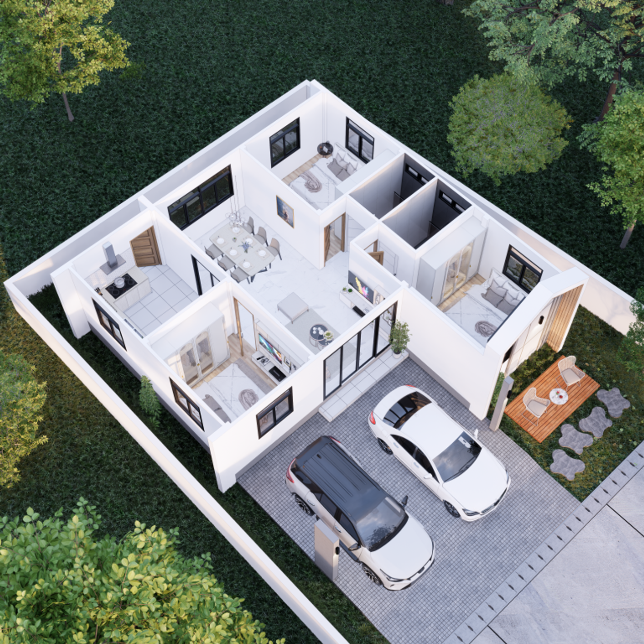 พื้นที่ใช้สอย 106 ตารางเมตร ตัวบ้านก่อสร้างด้วยวัสดุมาตรฐาน