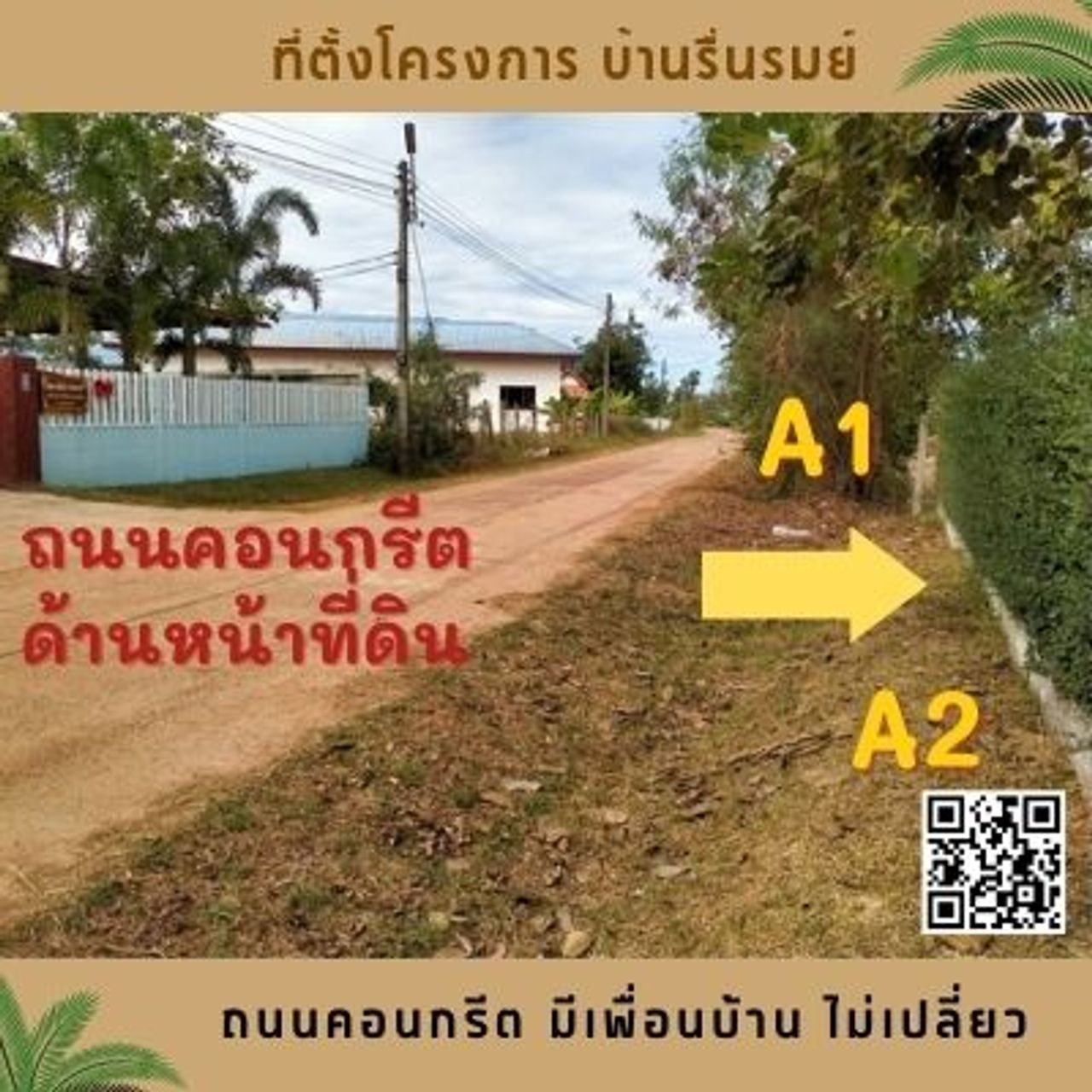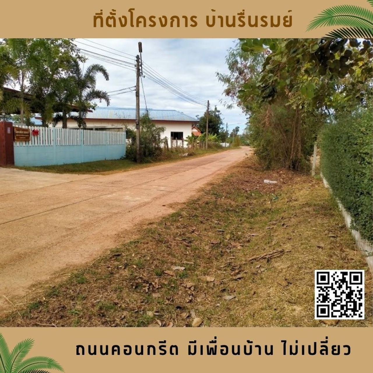 เดินทางสะดวก, ถนนคอนกรีต, ไม่เปลี่ยว, มีเพื่อนบ้าน, เข้าออกได้หลายเส้นทาง