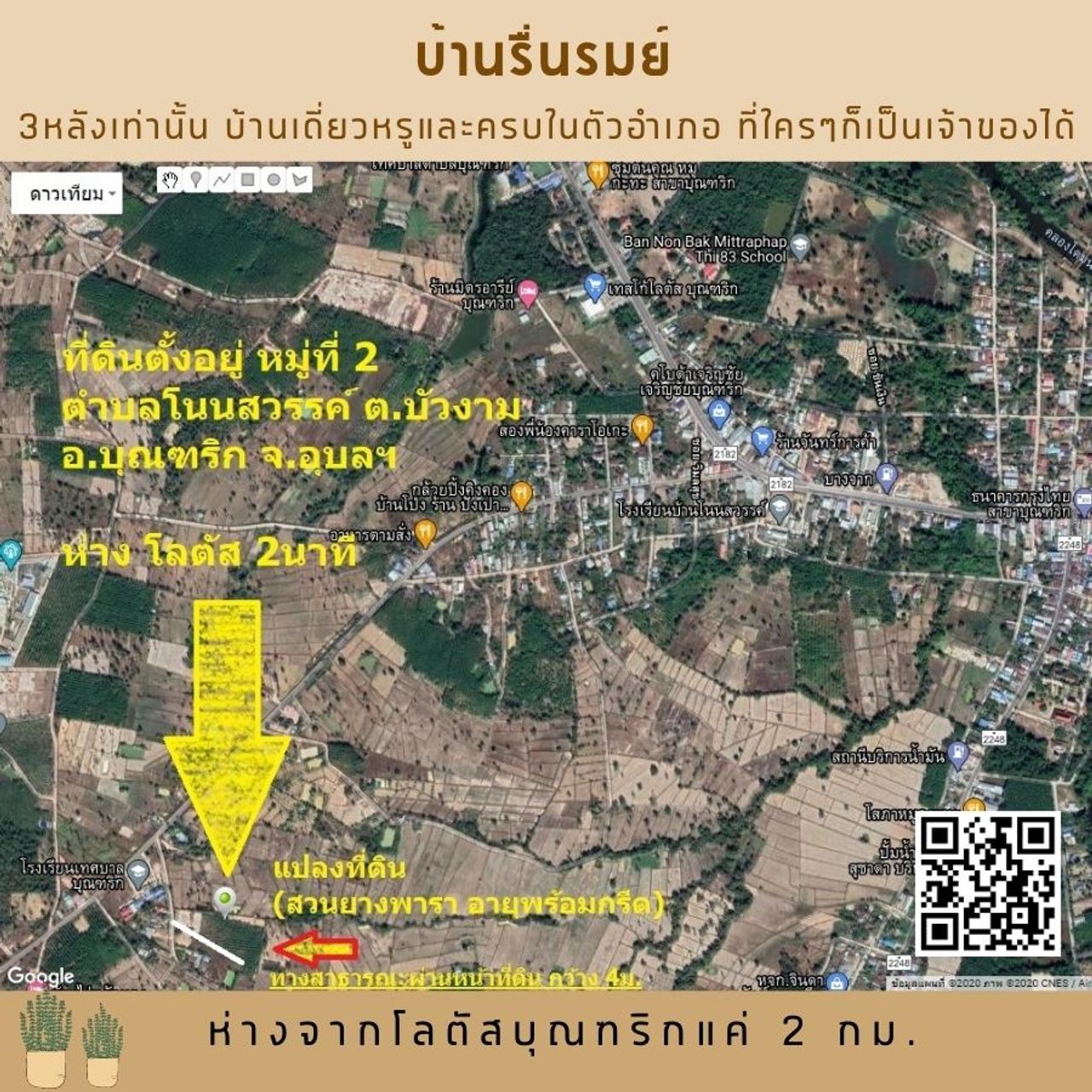 ตั้งอยู่ หมู่ที่ 2 บ้านโนนสวรรค์ ต.บัวงาม อ.บุณฑริก ห่างจากห้างโลตัส แค่ 2นาที