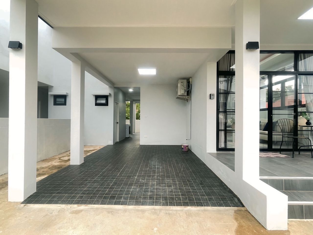 • ตัวบ้านผนังก่ออิฐมอญทั้งหลัง