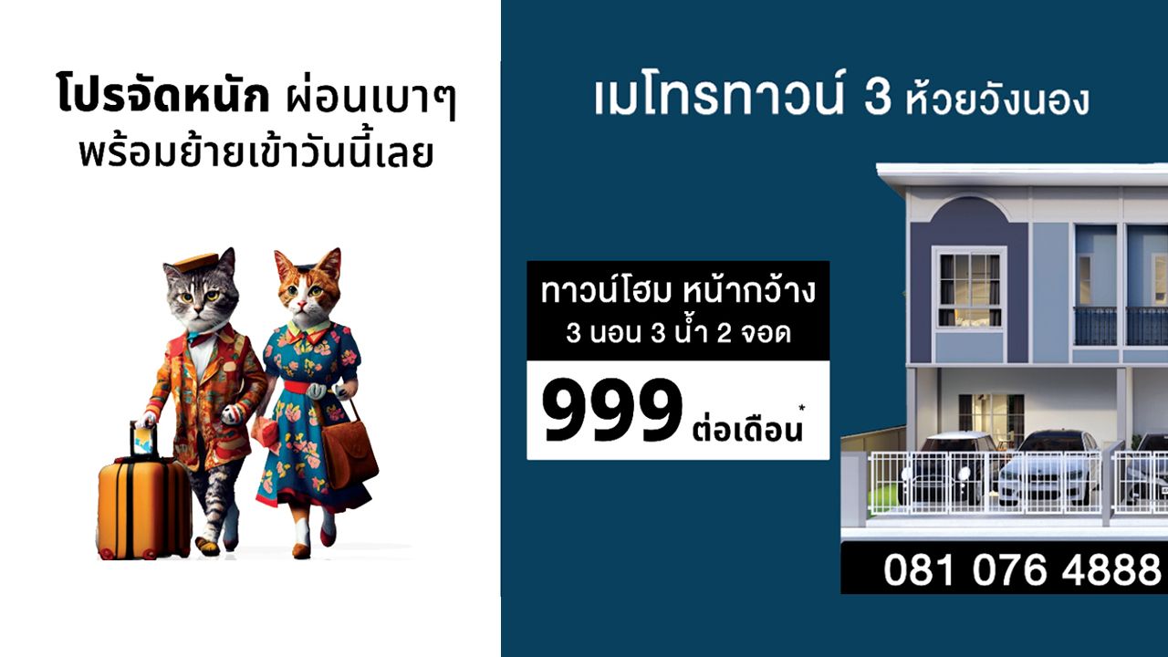 ทาวน์โฮมกลางเมือง พื้นที่ใช้สอยใหญ่เหมือนบ้านเดี่ยว ติดสวนสาธารณะห้วยวังนอง พร้อมสิ่งอำนวยความสะดวกครบครัน สระว่ายน้ำ เครื่องออกกำลังกาย สนามเด็กเล่น