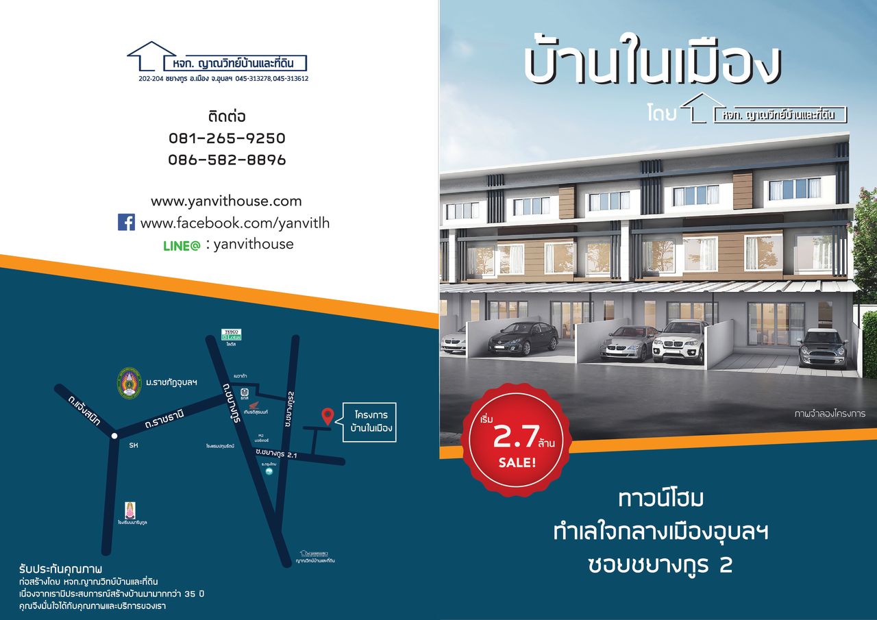 โครงการบ้านในเมือง - BAAN NAI MUEANG เซ็นทรัลฯ-ราชภัฏ-สวนวนารมย์ - เมืองอุบลราชธานี - ในเมือง