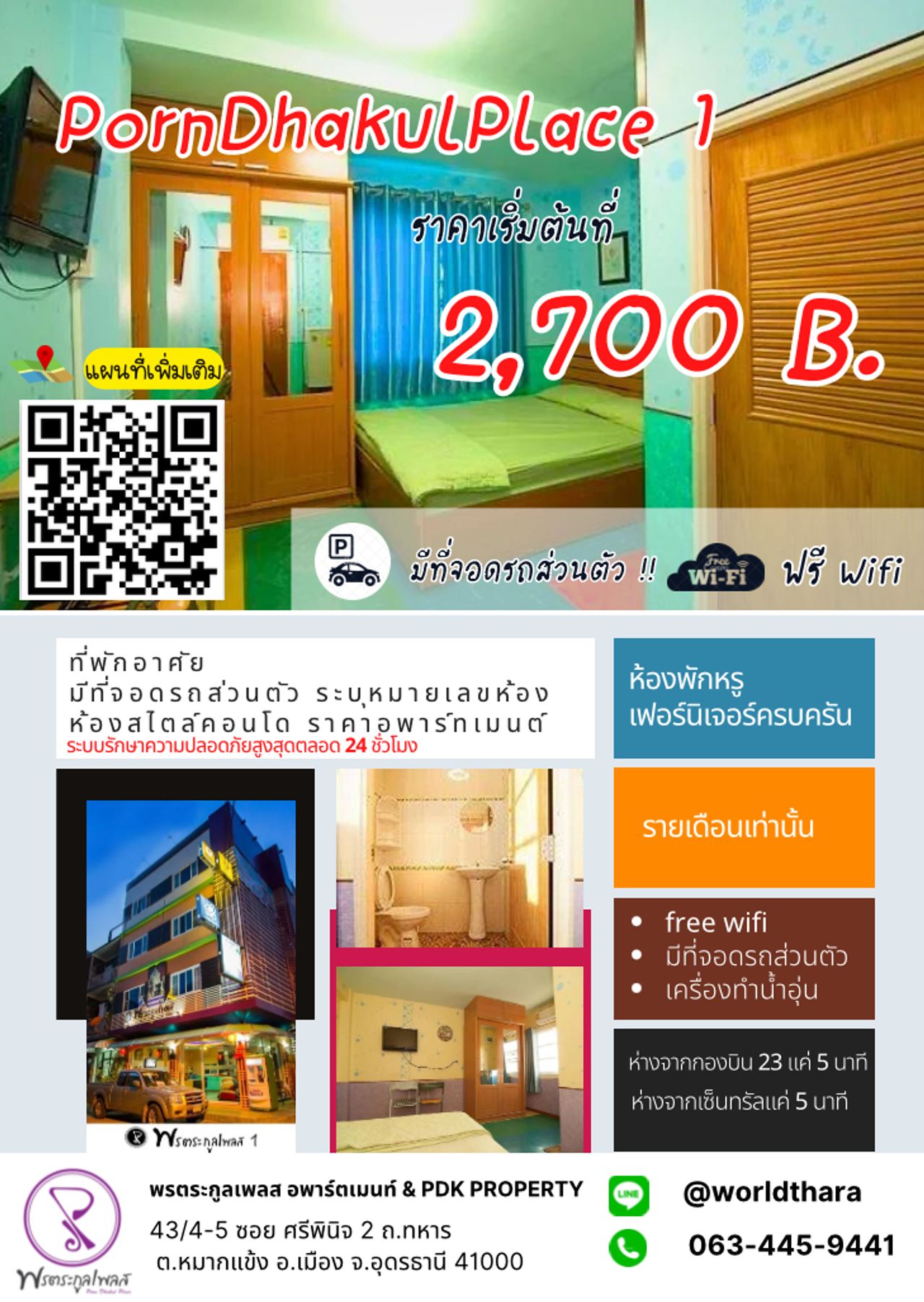 💴 ค่าห้อง 2,700 บาท (สัญญา1ปี)