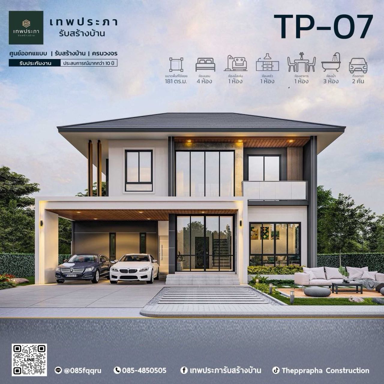 TP-07 แบบบ้านสไตล์คอนเทมโพรารี่ เทพประภา ศูนย์ออกแบบรับสร้างบ้าน - Thepprapha Construction คอนเทมโพรารี่
