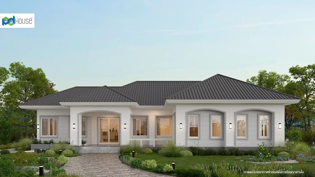 บ้านสไตล์โมเดิร์นที่ตอบโจทย์การใช้ชีวิตในยุคปัจจุบันเหมาะกับสภาพภูมิอากาศในเขตร้อนชื้นด้วย เอกลักษณ์การสร้างพื้นที่หรือ Space ให้โปร่งโล่ง โดดเด่นด้วยชายคาที่ยื่นยาวและระแนงที่แต่งเติม เพิ่มมิติให้กับตัวอาคารพร้อมช่วยลดทอน ความร้อนจากแสงแดดเปิดรับแสงและลมจากธรรมชาติ ได้รอบทิศ เน้นความเรียบง่ายทันสมัยภายในคุมโทนสีอ่อนเพื่อให้ดูอบอุ่นและออกแบบให้ทุกฟังก์ชัน เชื่อมต่อกันเพื่อความสะดวกในการใช้งานพร้อมห้องนอนผู้สูงอายุบริเวณชั้นล่าง เหมาะสำหรับ ครอบครัวขนาดใหญ่ตอบรับการอยู่อาศัยได้อย่างสมบูรณ์แบบ