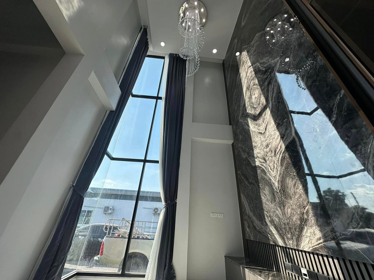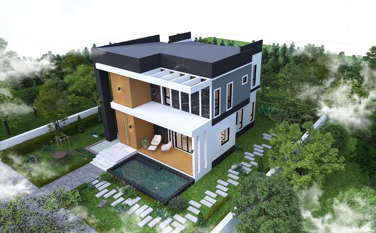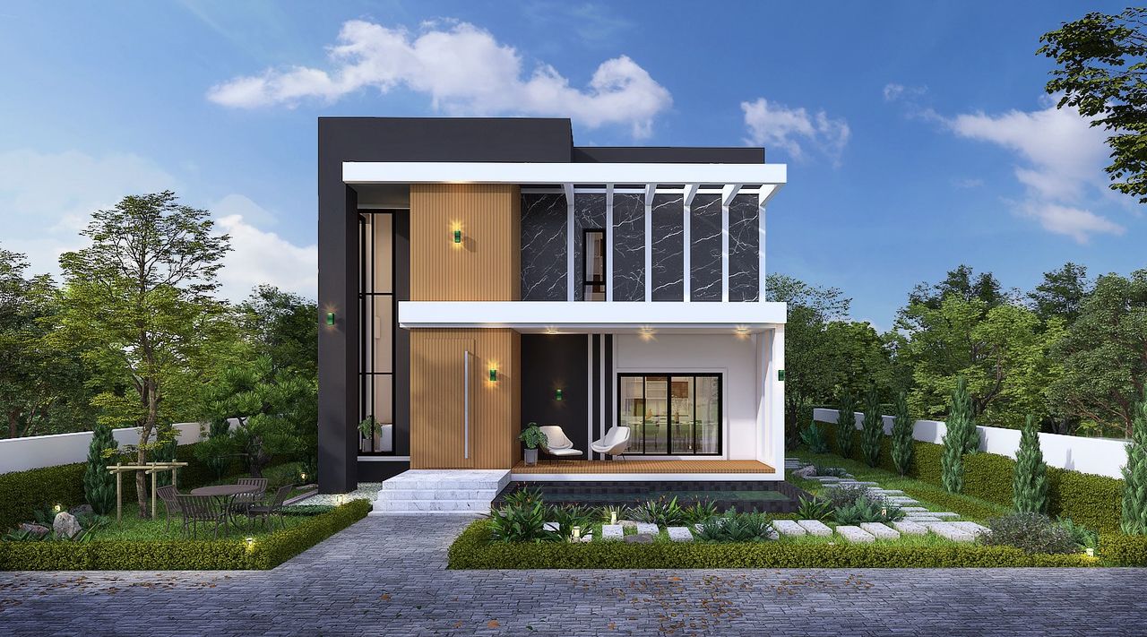 บ้านสไตล์โมเดิร์น ทรงกล่องซ่อนหลังคา Modern Box ผสมผสานความเรียบ เท่ หรู ทันสมัยอย่างลงตัว ภายในบ้านออกแบบให้ตอบโจทย์ไลฟ์สไตล์คนรุ่นใหม่ พื้นที่ชั่นล่างจัดสรรค์ให้ครบทั้งโถงสูงรับแขก Double Space เค้าท์เตอร์บาร์ ส่วนชั้นบนจัดเป็นโซนพักผ่อนส่วนตัว สะท้อนรสนิยมของเจ้าของบ้านที่ชื่นชอบความเรียบเท่ แต่มีเอกลักษณ์แบบโมเดิร์นแท้ๆ