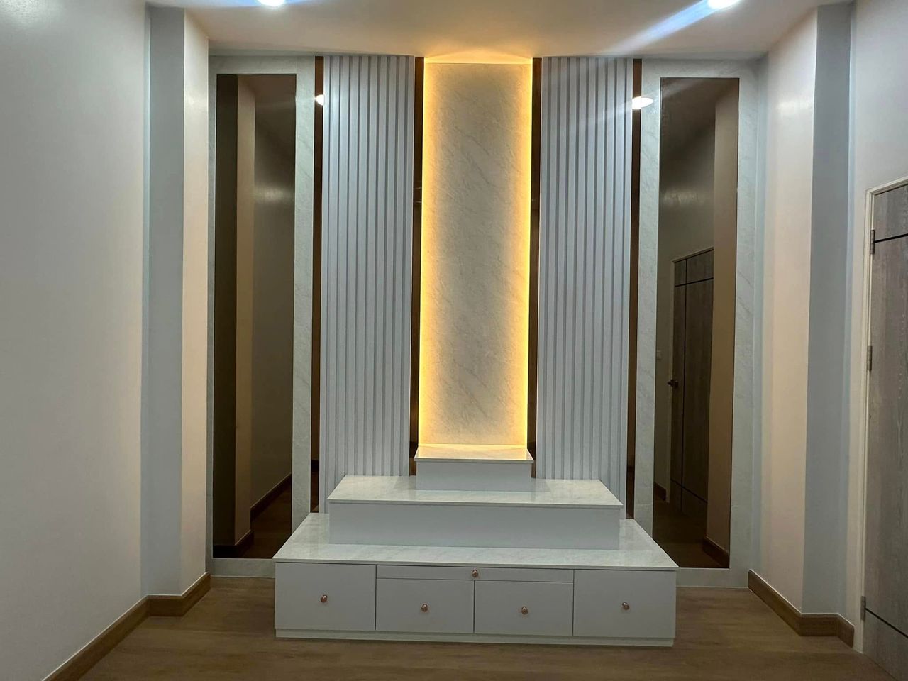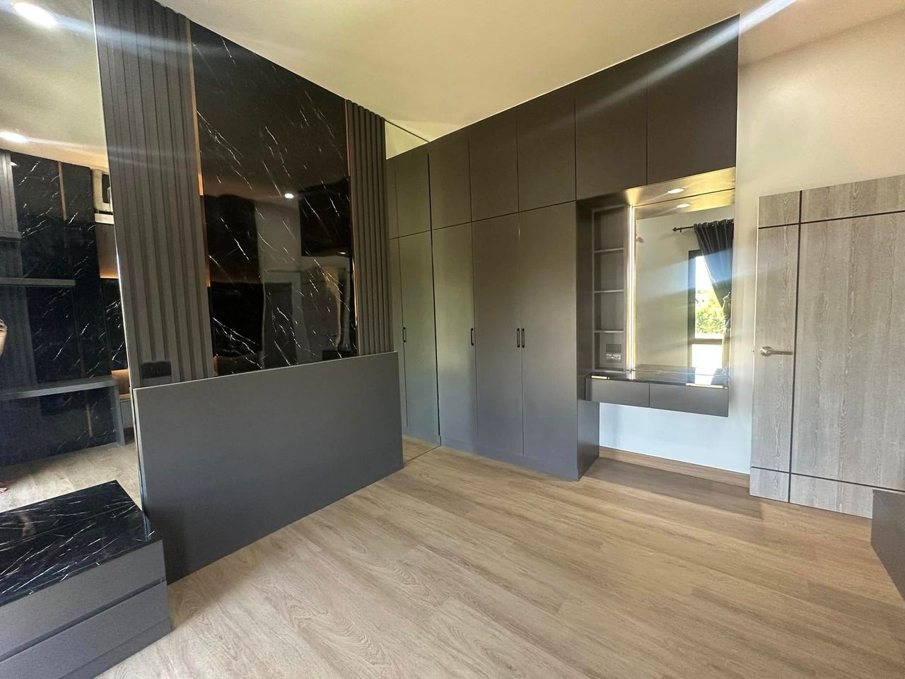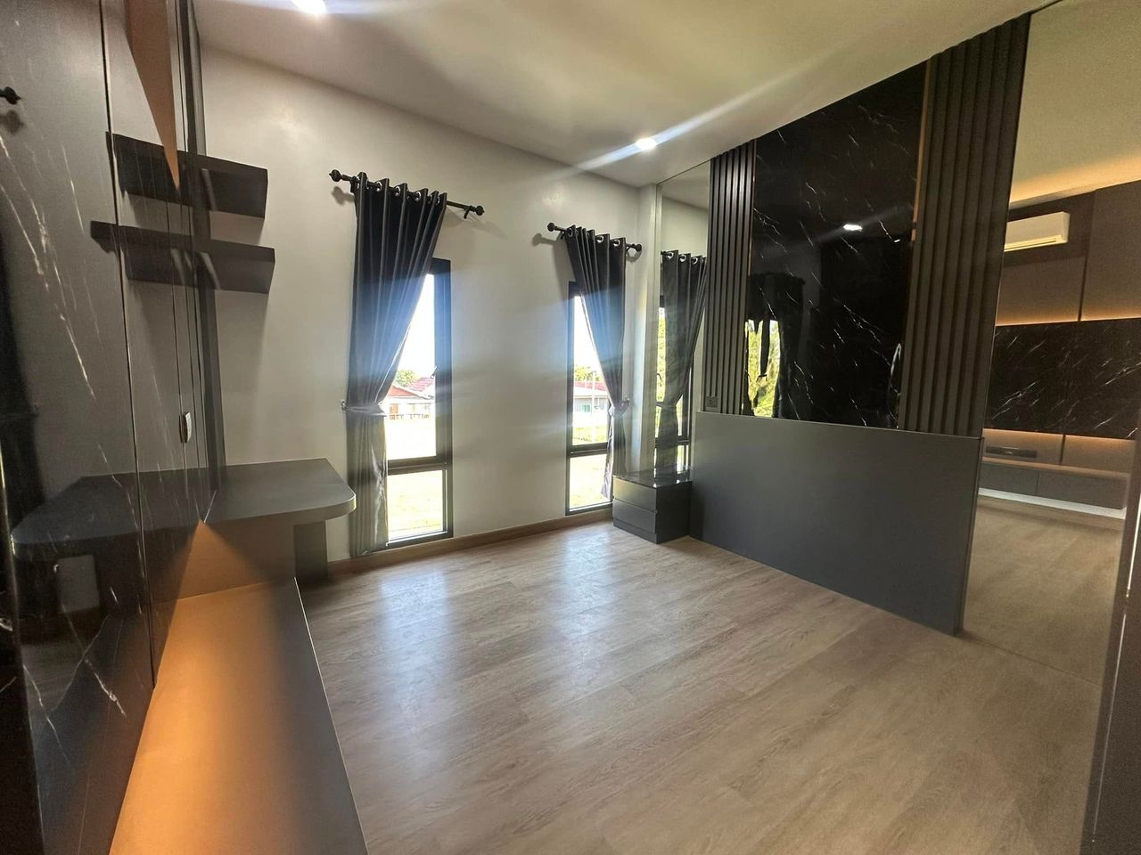 บ้านสไตล์โมเดิร์น ทรงกล่องซ่อนหลังคา Modern Box ผสมผสานความเรียบ เท่ หรู ทันสมัยอย่างลงตัว ภายในบ้านออกแบบให้ตอบโจทย์ไลฟ์สไตล์คนรุ่นใหม่ พื้นที่ชั่นล่างจัดสรรค์ให้ครบทั้งโถงสูงรับแขก Double Space เค้าท์เตอร์บาร์ ส่วนชั้นบนจัดเป็นโซนพักผ่อนส่วนตัว สะท้อนรสนิยมของเจ้าของบ้านที่ชื่นชอบความเรียบเท่ แต่มีเอกลักษณ์แบบโมเดิร์นแท้ๆ