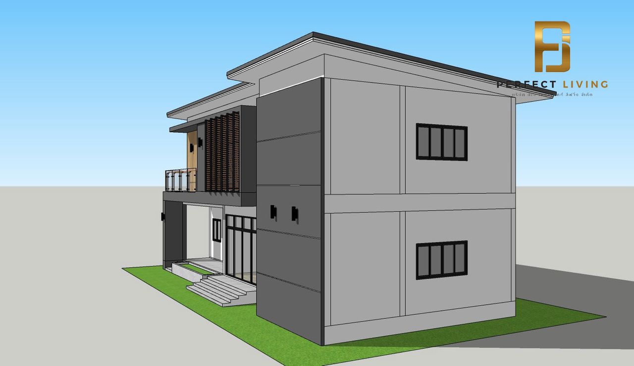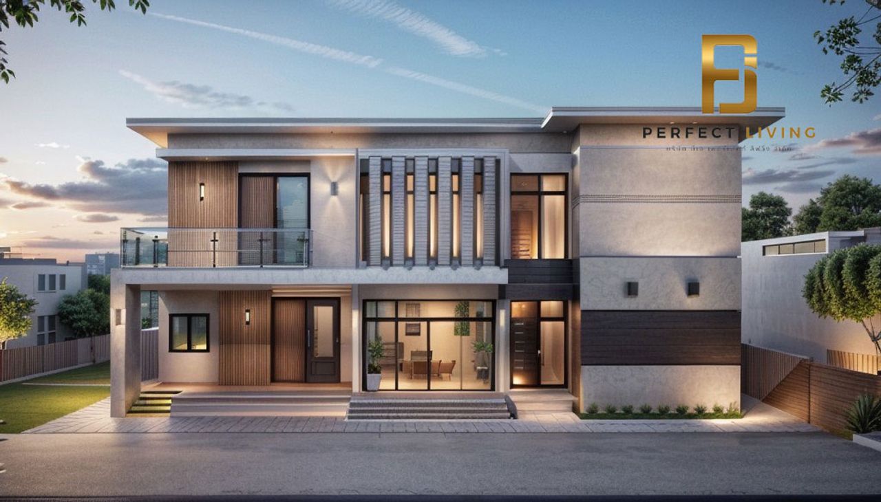 • ✨ ดีไซน์โมเดิร์นหรูหรา: โครงสร้างทรงกล่องสองชั้นพร้อมระเบียงและกันสาดยื่นให้มิติที่สง่างาม เส้นสายคมชัดแต่แฝงด้วยความอบอุ่นจากโทนไม้ธรรมชาติ