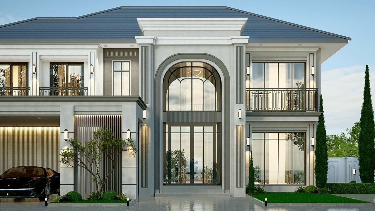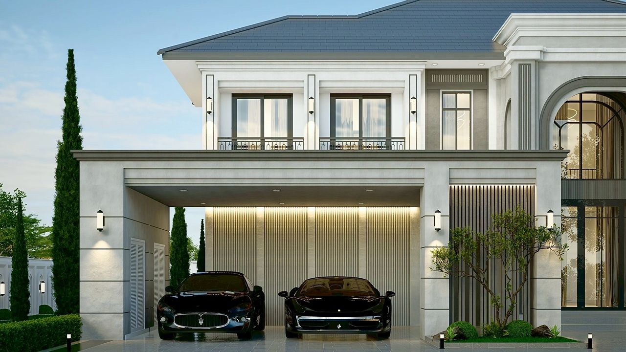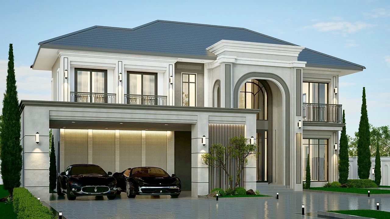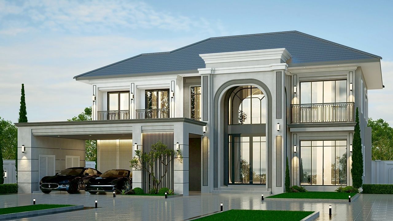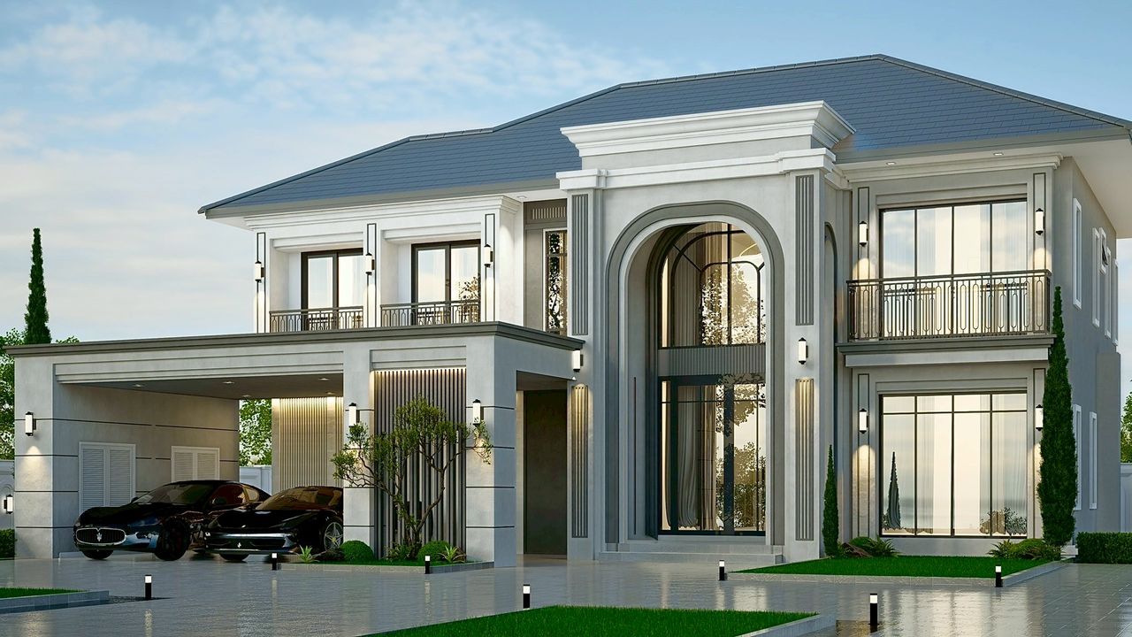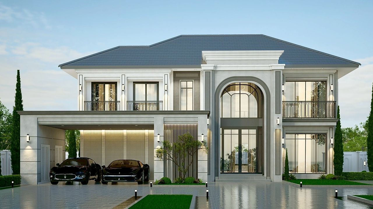 VINCENT-08 แบบบ้านสไตล์ Modern Classic ประกอบด้วย 5 ห้องนอน 5 ห้องน้ำ พร้อมโรงจอดรถ 2 คัน