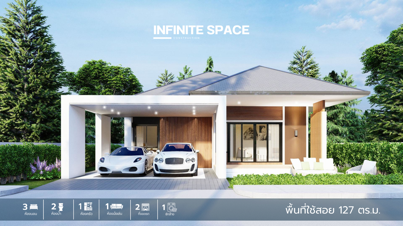 รวมพื้นที่ใช้สอย : 127 ตารางเมตร