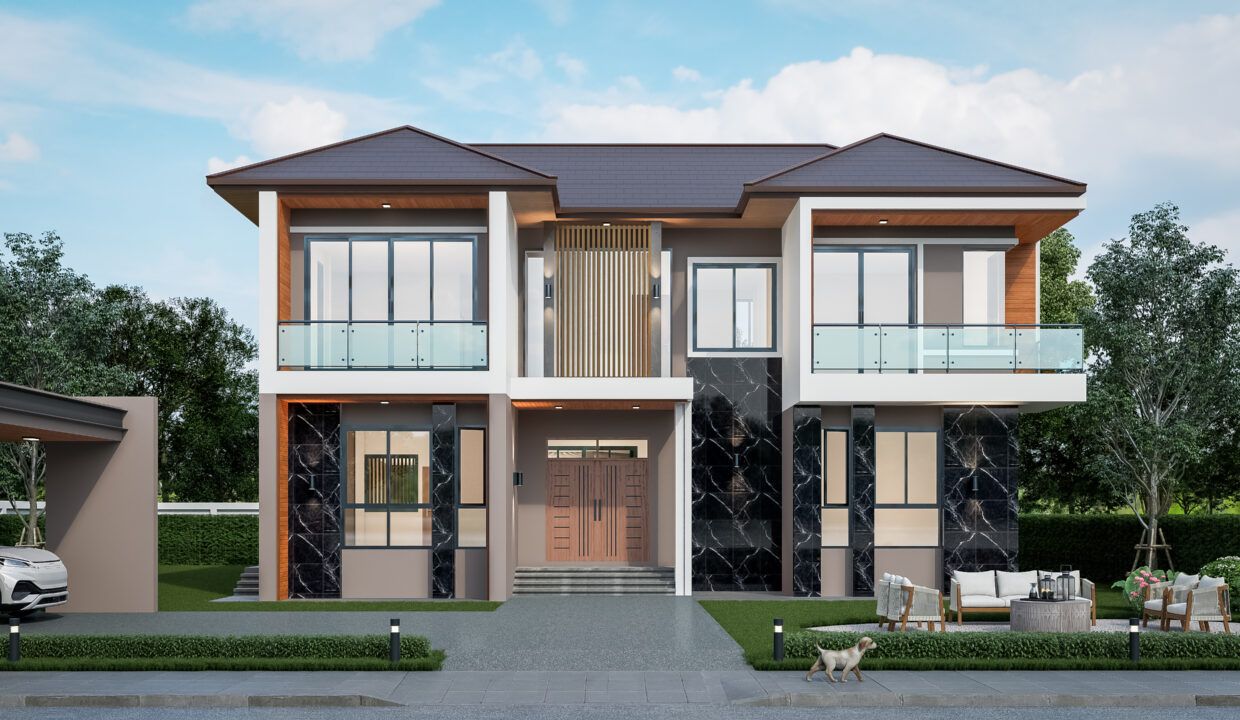 ” บ้านเเห่งความฝัน สู่ความเป็นจริง ” บ้าน contemporary ที่มาพร้อมกับโทนสี น้ำตาล-เทา-ไม้ เเละกระเบื้องตกเเต่งที่เเทรกด้วยความเป็นไม้ เพิ่มความอบอุ่นให้แก่ผู้อยู่อาศัย