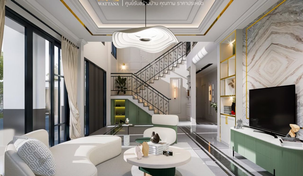บ้าน Modern classic บ้านที่มาพร้อมกับความหรูหรา เรียบง่าย สบายตา มาในโทนสีขาว-เทา บ้านหลังนี้จะเน้นการออกแบบให้มีพื้นที่ส่วนตัวมากขึ้น เช่น ห้องนอนขนาดใหญ่ ห้องน้ำในห้องนอน ซึ่งตอบโจทย์คนที่ชอบความเป็นส่วนตัวได้เป็นอย่างดีเป็นสไตล์การออกแบบที่ได้รับการขนานนามว่าเป็น Timeless Design หรือดีไซน์ที่มีความงามอยู่เหนือกาลเวลา เกิดจากการผสมผสานระหว่างModern เเละ Classic ที่เน้นความทันสมัยและดีไซน์ที่เรียบง่าย กับสไตล์คลาสสิก ที่เน้นกลิ่นอายดั้งเดิม และวัสดุที่หรูหรา