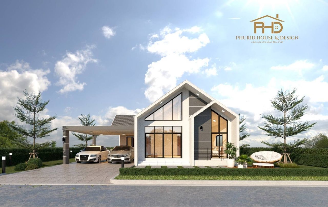 เเบบบ้านชั้นเดียว ทรงนอร์ดิก ขนาด: 3 ห้องนอน 2 ห้องน้ำ 1 ห้องโถง 1 ครัว