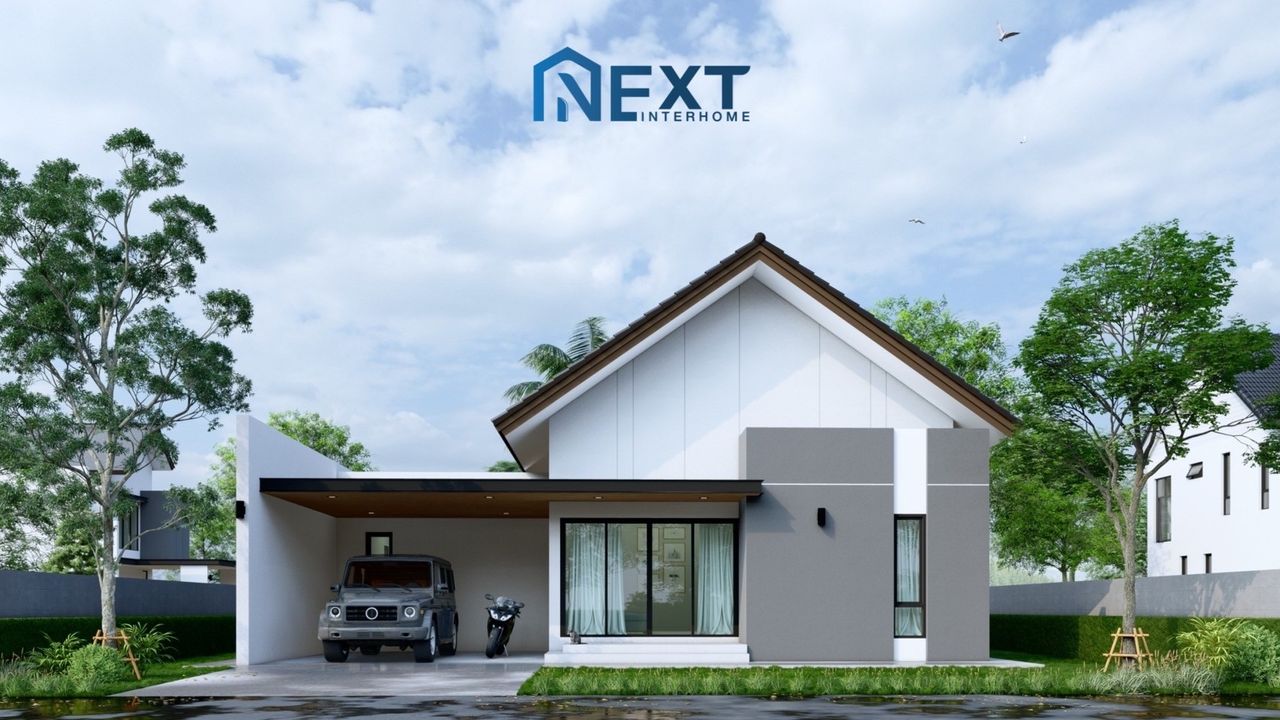 แบบบ้านพร้อมก่อสร้าง : บ้าน 1 ชั้น 2 ห้องนอน 2 ห้องน้ำ 2 ที่จอดรถ