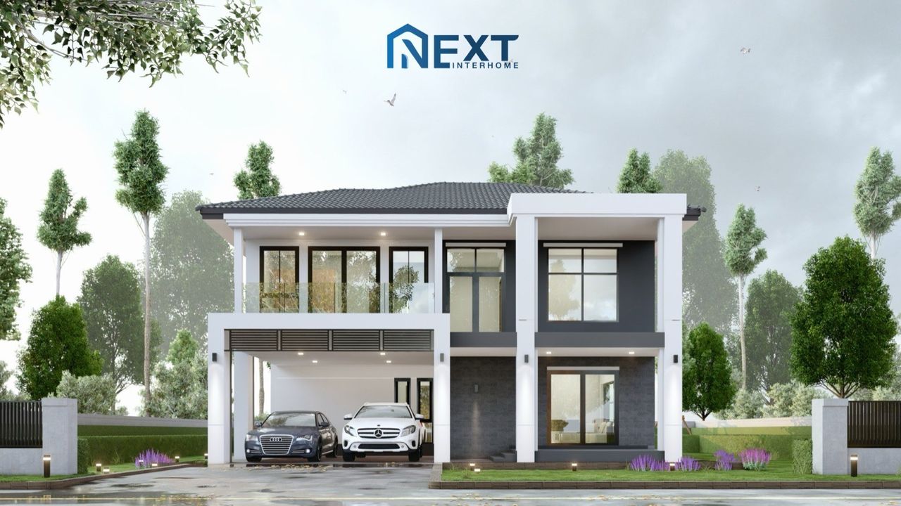 แบบบ้านพร้อมก่อสร้าง : บ้าน 2 ชั้น 4 ห้องนอน 3 ห้องน้ำ 2 ที่จอดรถ