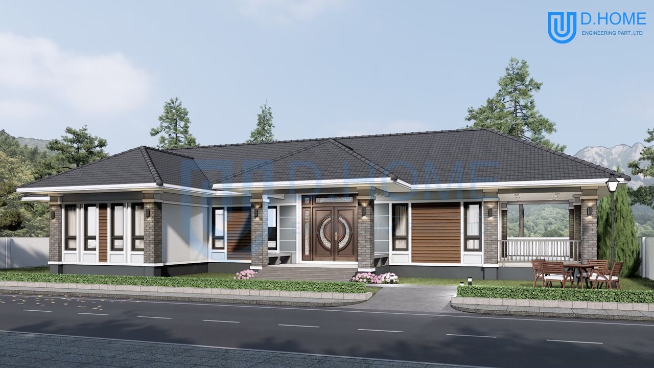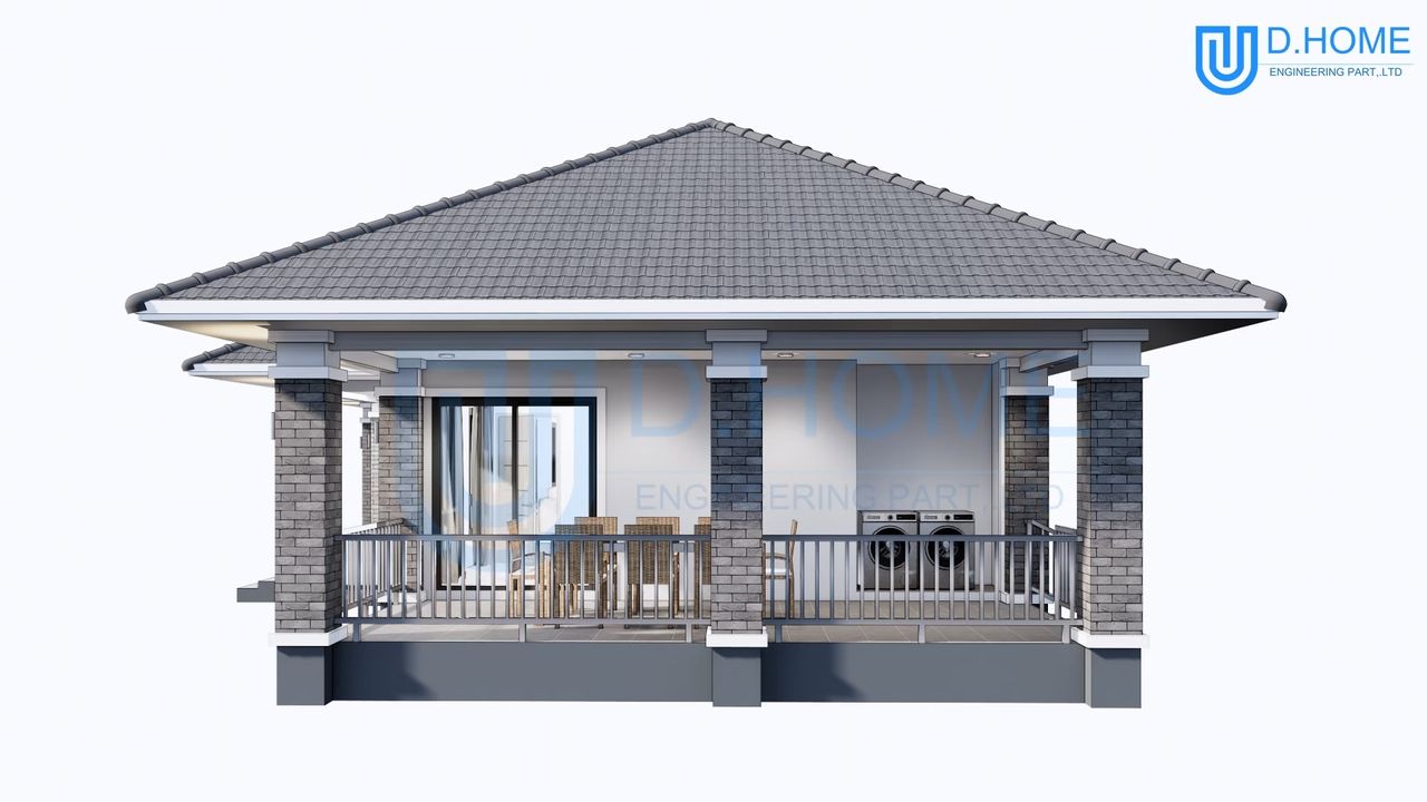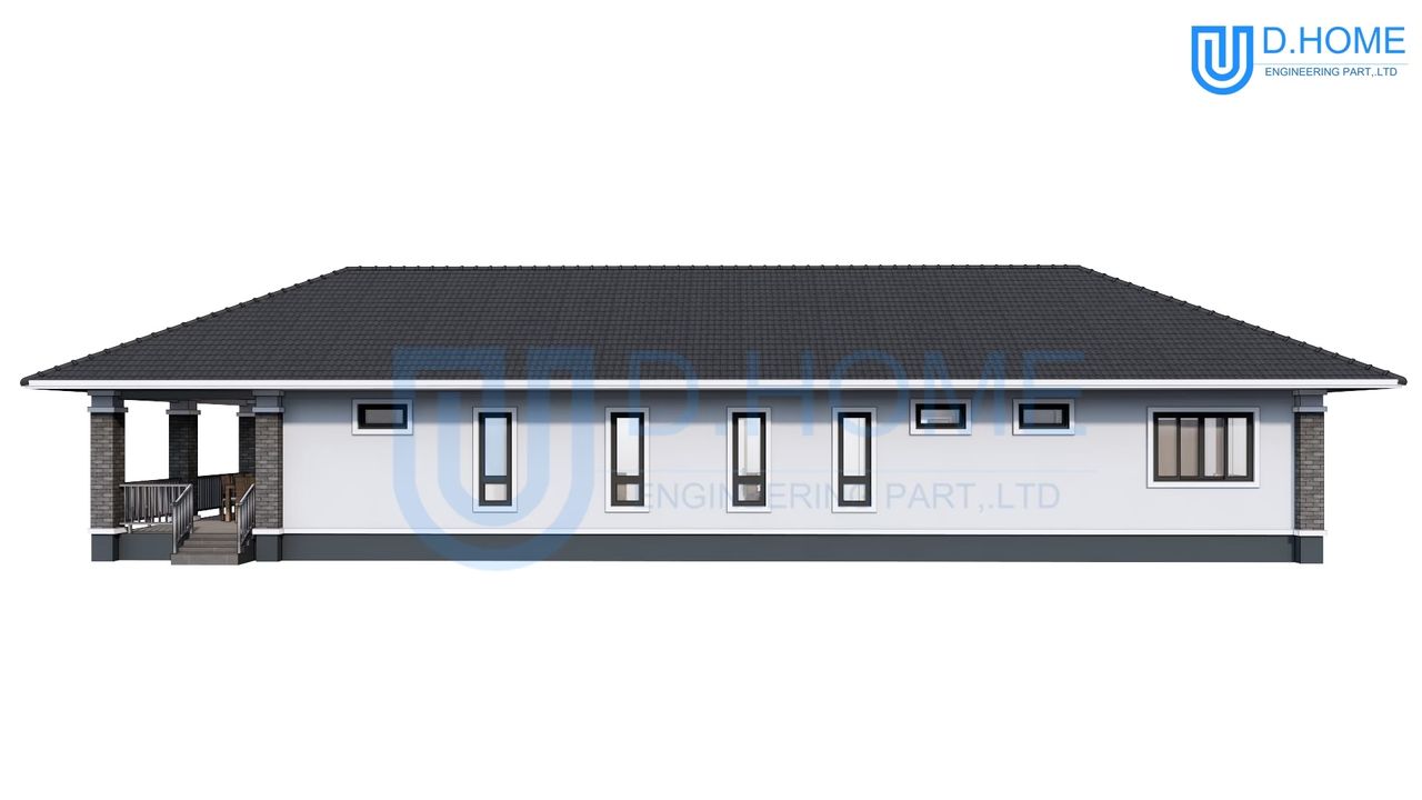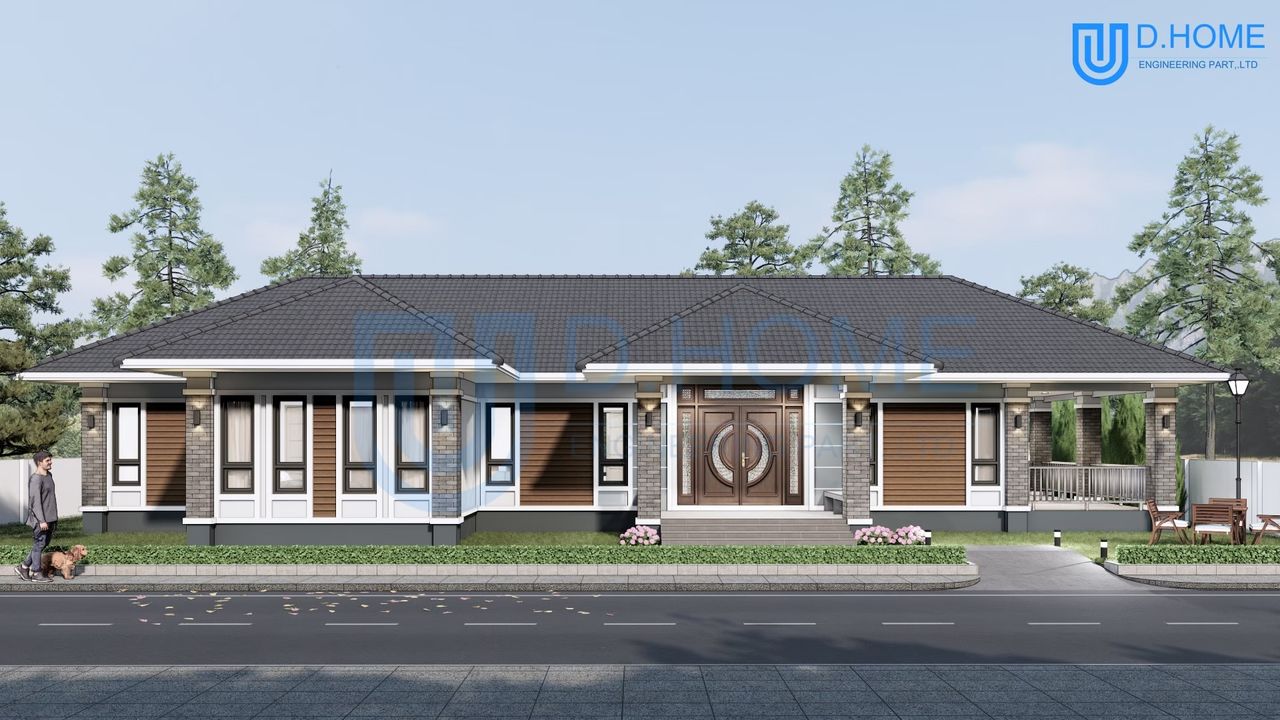 แบบบ้านพร้อมก่อสร้าง : บ้าน 1 ชั้น 4 ห้องนอน 3 ห้องน้ำ 1 ห้องรับแขก 1 ห้องครัว
