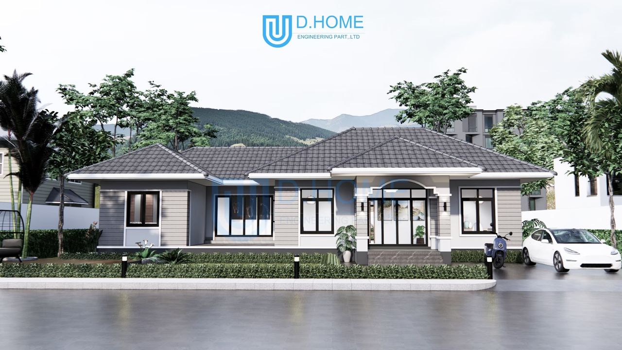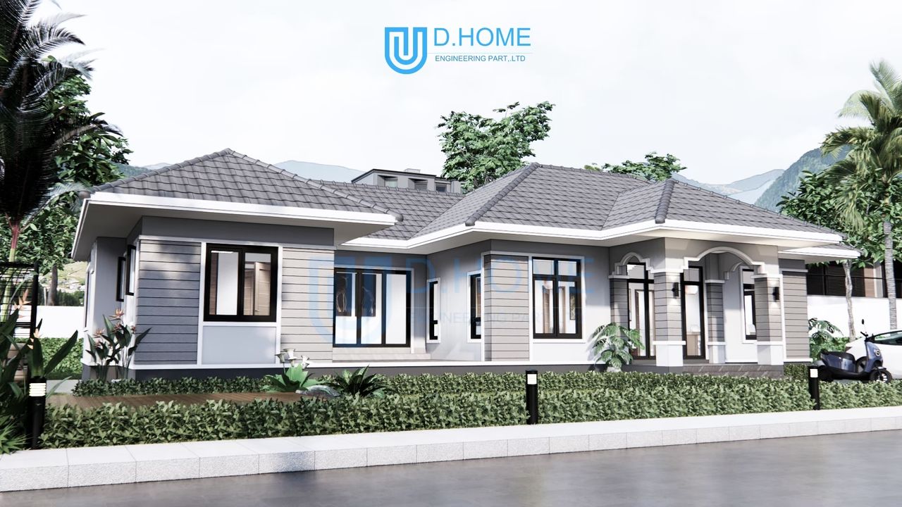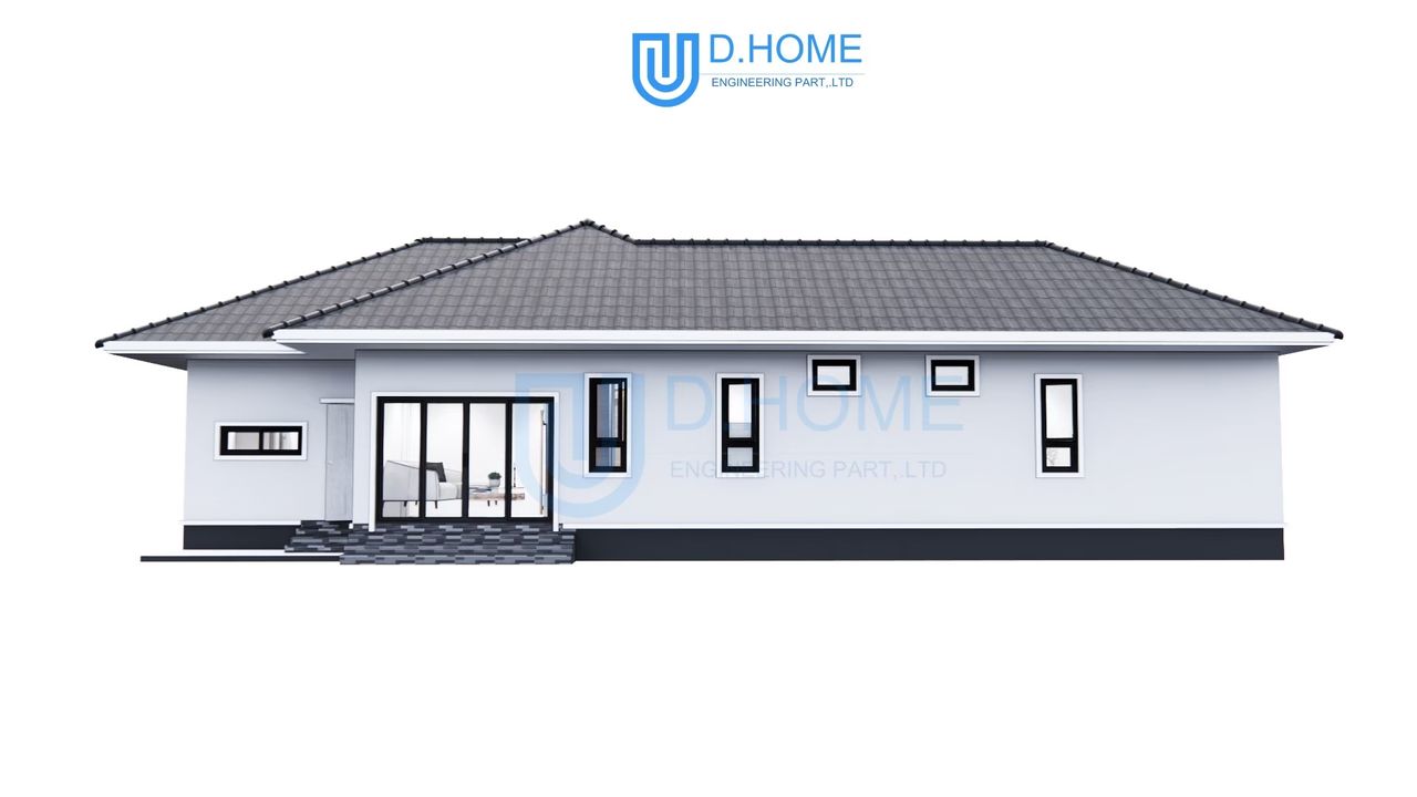 แบบบ้านพร้อมก่อสร้าง : บ้าน 1 ชั้น 3 ห้องนอน 3 ห้องน้ำ 2 ห้องรับแขก 1 ห้องครัว