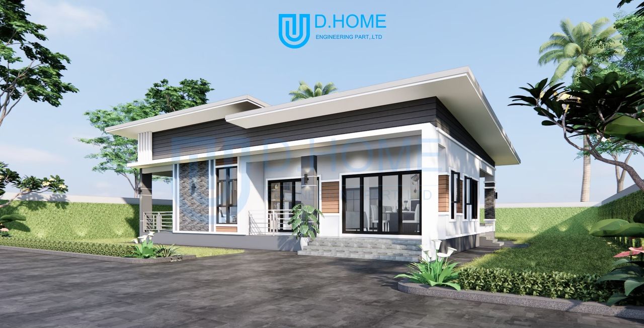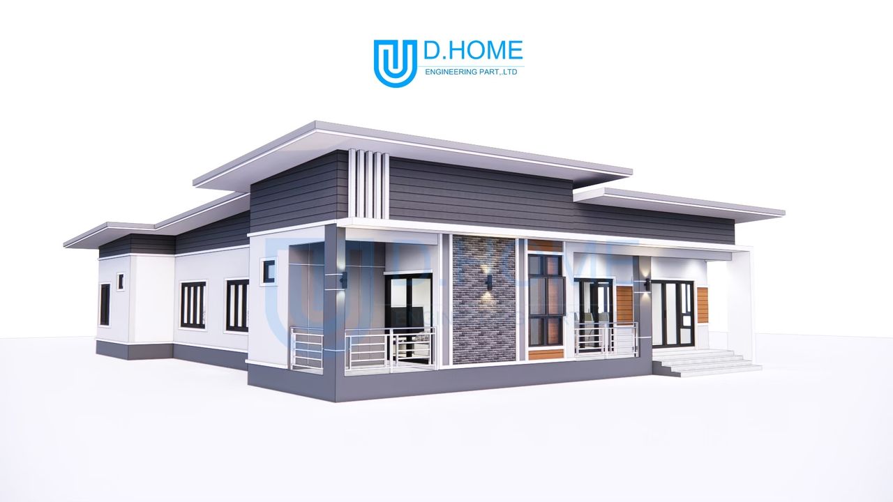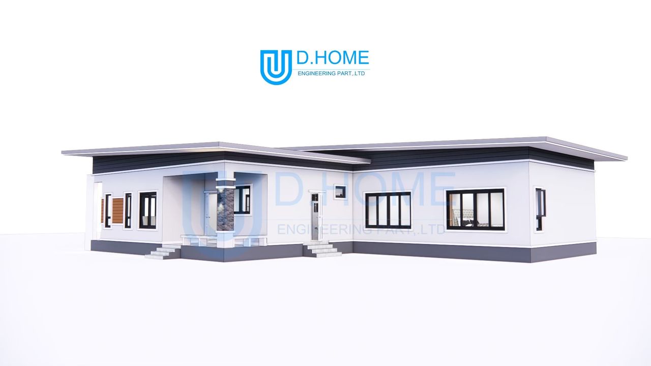แบบบ้านพร้อมก่อสร้าง : บ้าน 1 ชั้น 4 ห้องนอน 3 ห้องน้ำ 1 ห้องรับแขก 1 ห้องครัว 1 ห้องพระ