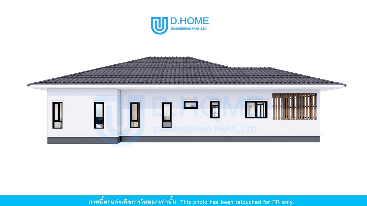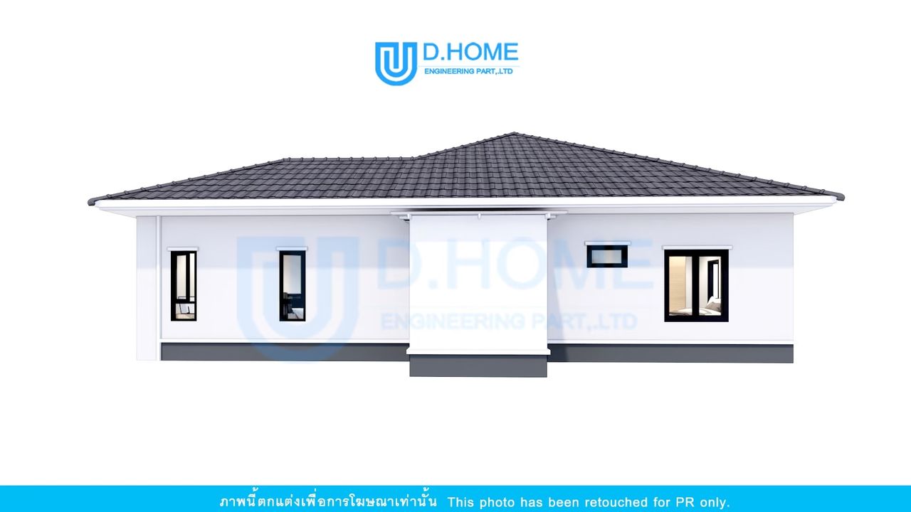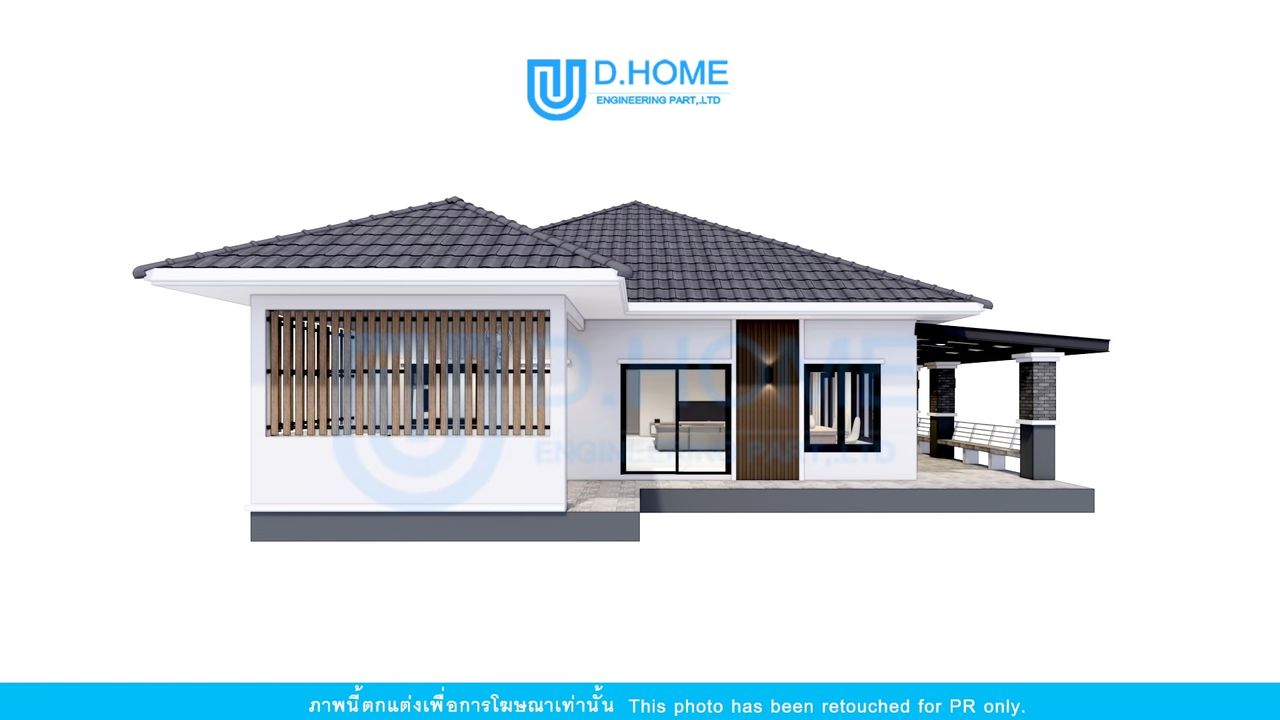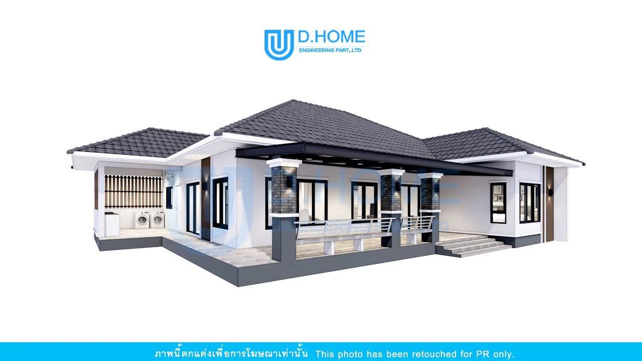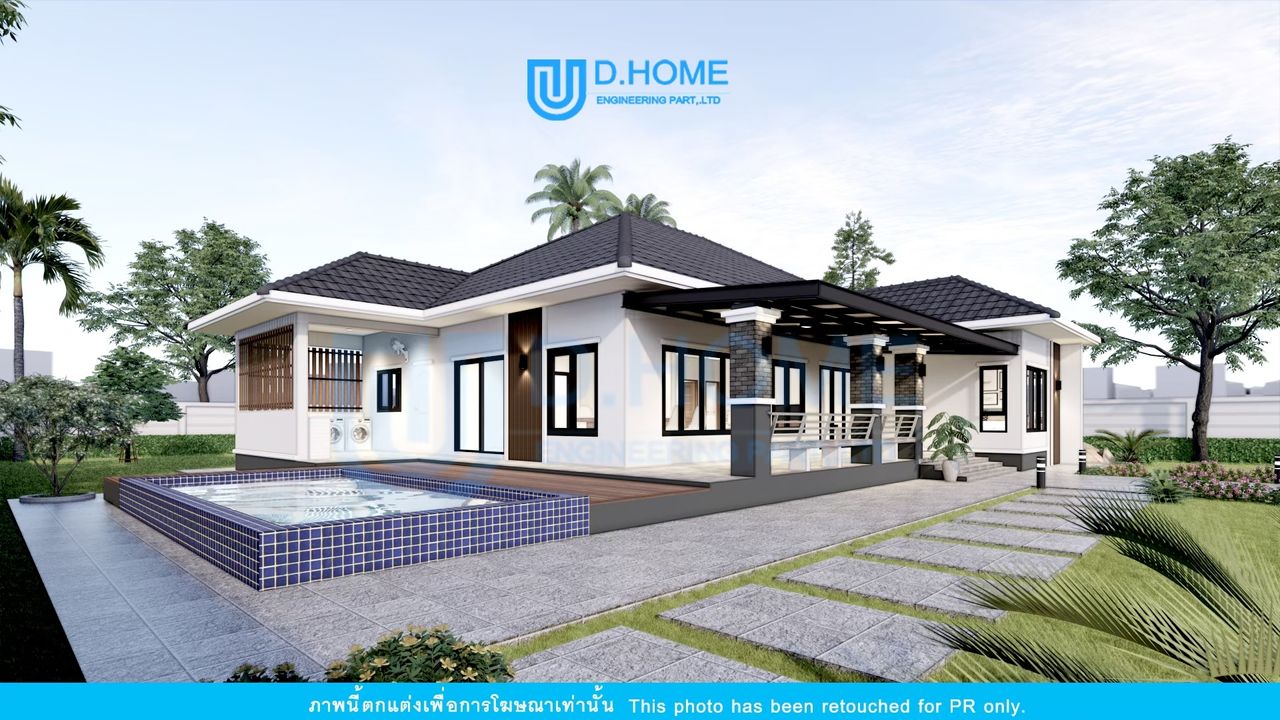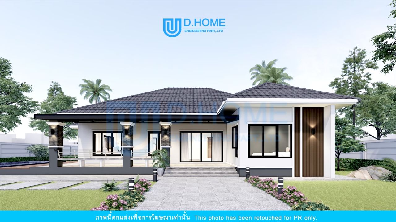 แบบบ้านพร้อมก่อสร้าง : บ้าน 1 ชั้น 3 ห้องนอน 3 ห้องน้ำ 1 ห้องรับแขก 2 ห้องครัว