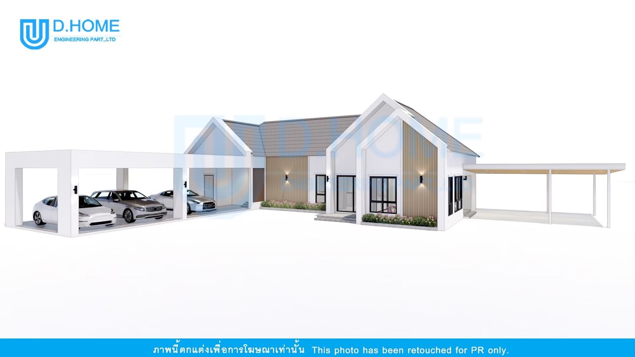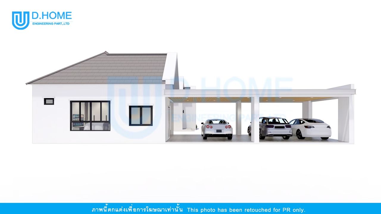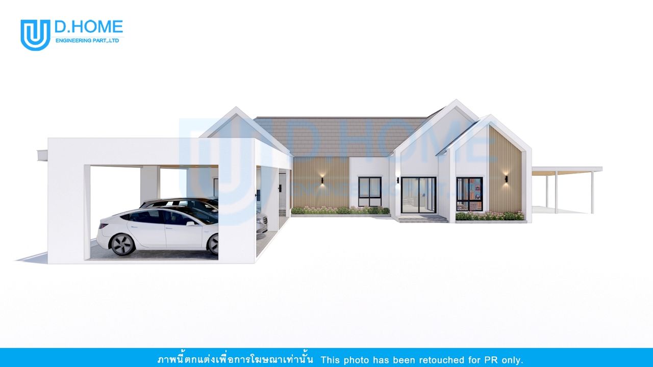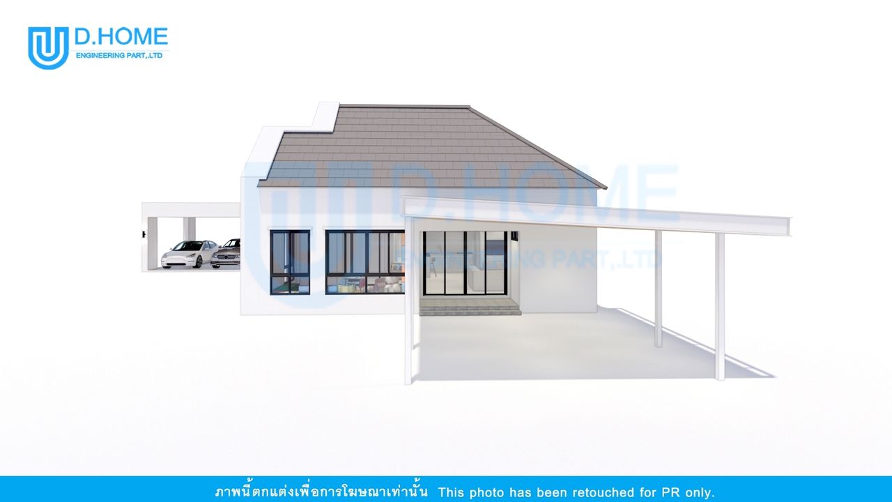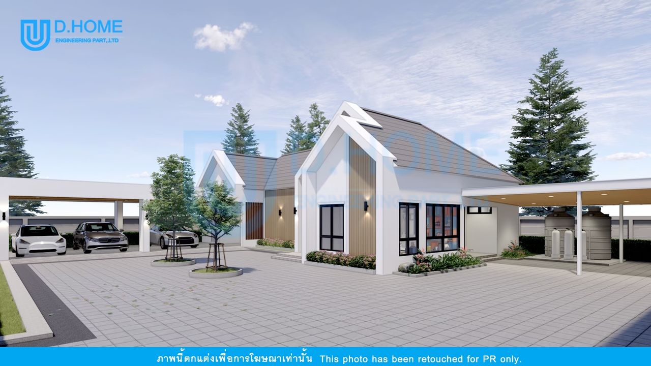 แบบบ้านพร้อมก่อสร้าง : บ้าน 1 ชั้น 2 ห้องนอน 3 ห้องน้ำ 2 ห้องรับแขก 1 ห้องครัว 3 ที่จอดรถ