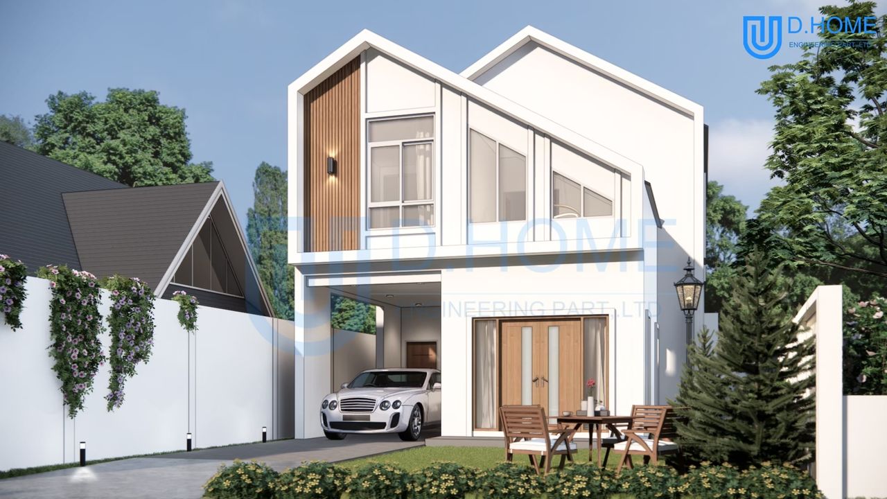 แบบบ้านพร้อมก่อสร้าง : บ้าน 2 ชั้น 4 ห้องนอน 2 ห้องน้ำ 1 ห้องรับแขก 1 ห้องครัว 2 ที่จอดรถ
