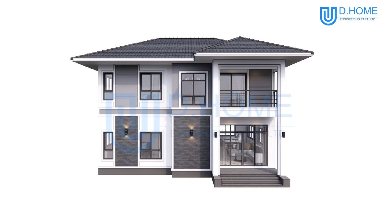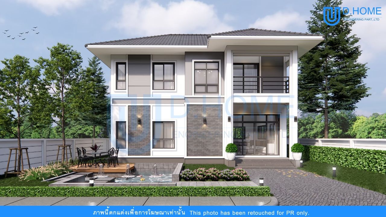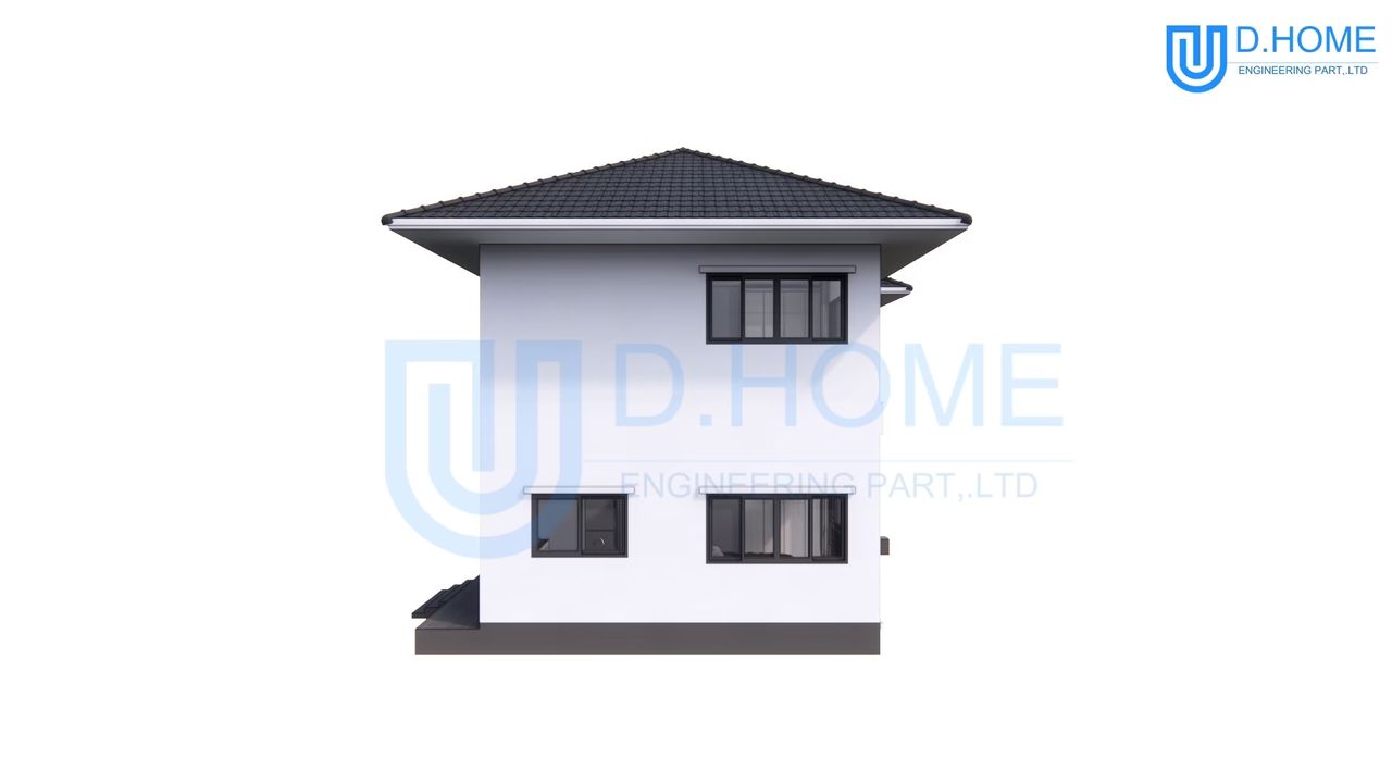 แบบบ้านพร้อมก่อสร้าง : บ้าน 2 ชั้น 4 ห้องนอน 3 ห้องน้ำ 1 ห้องรับแขก 1 ห้องครัว