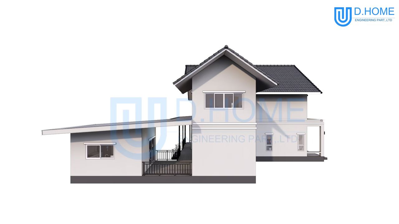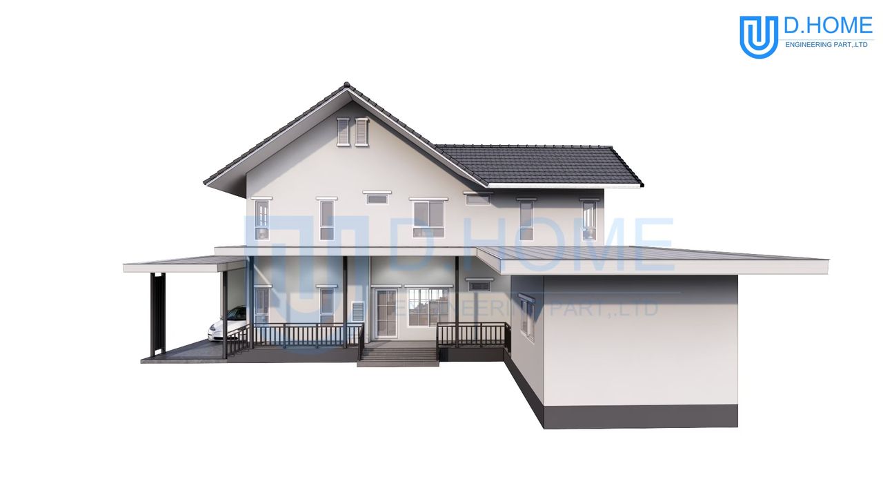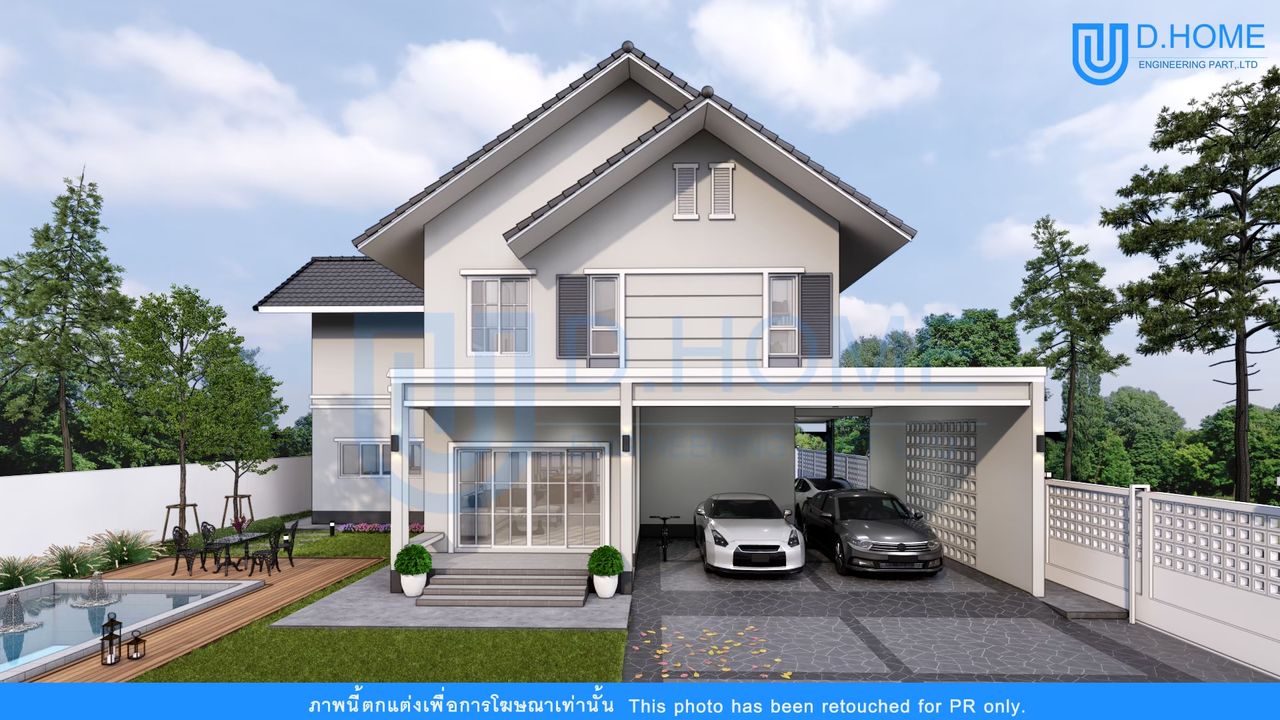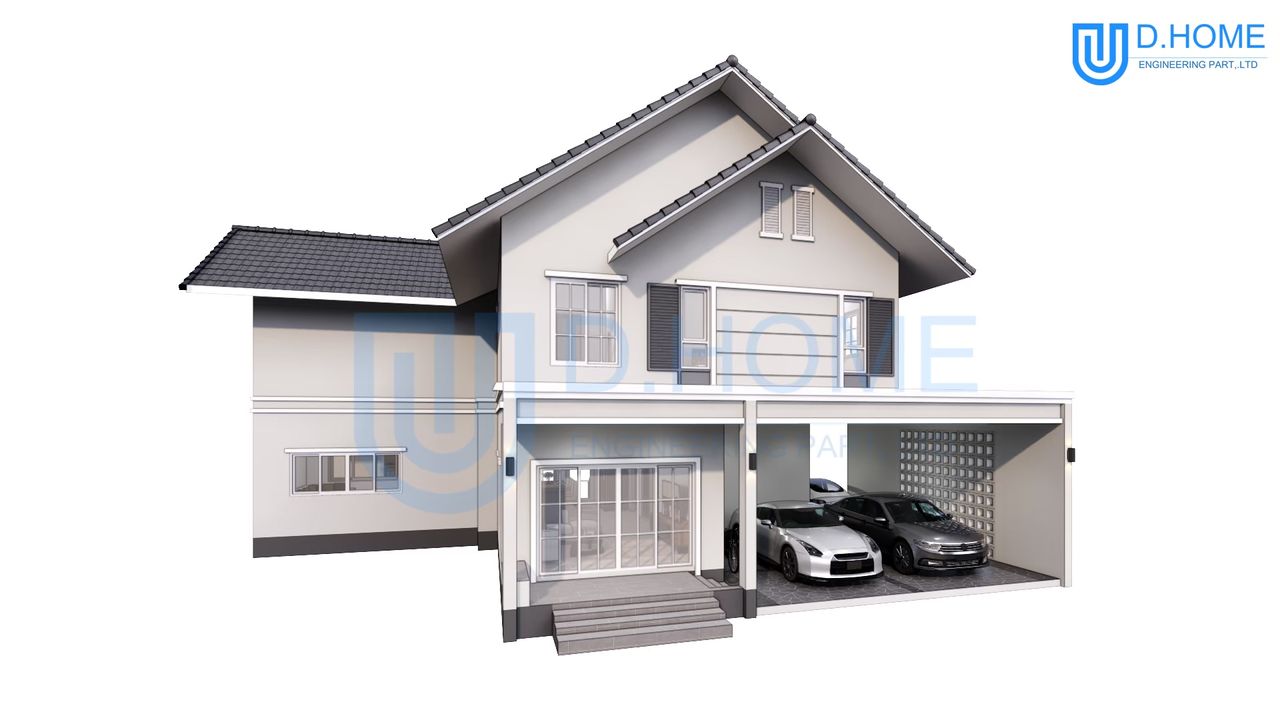 แบบบ้านพร้อมก่อสร้าง : บ้าน 2 ชั้น 4 ห้องนอน 3 ห้องน้ำ 2 ห้องรับแขก 1 ห้องครัว 3 ที่จอดรถ 1 ห้องพระ 1 ห้องทำงาน