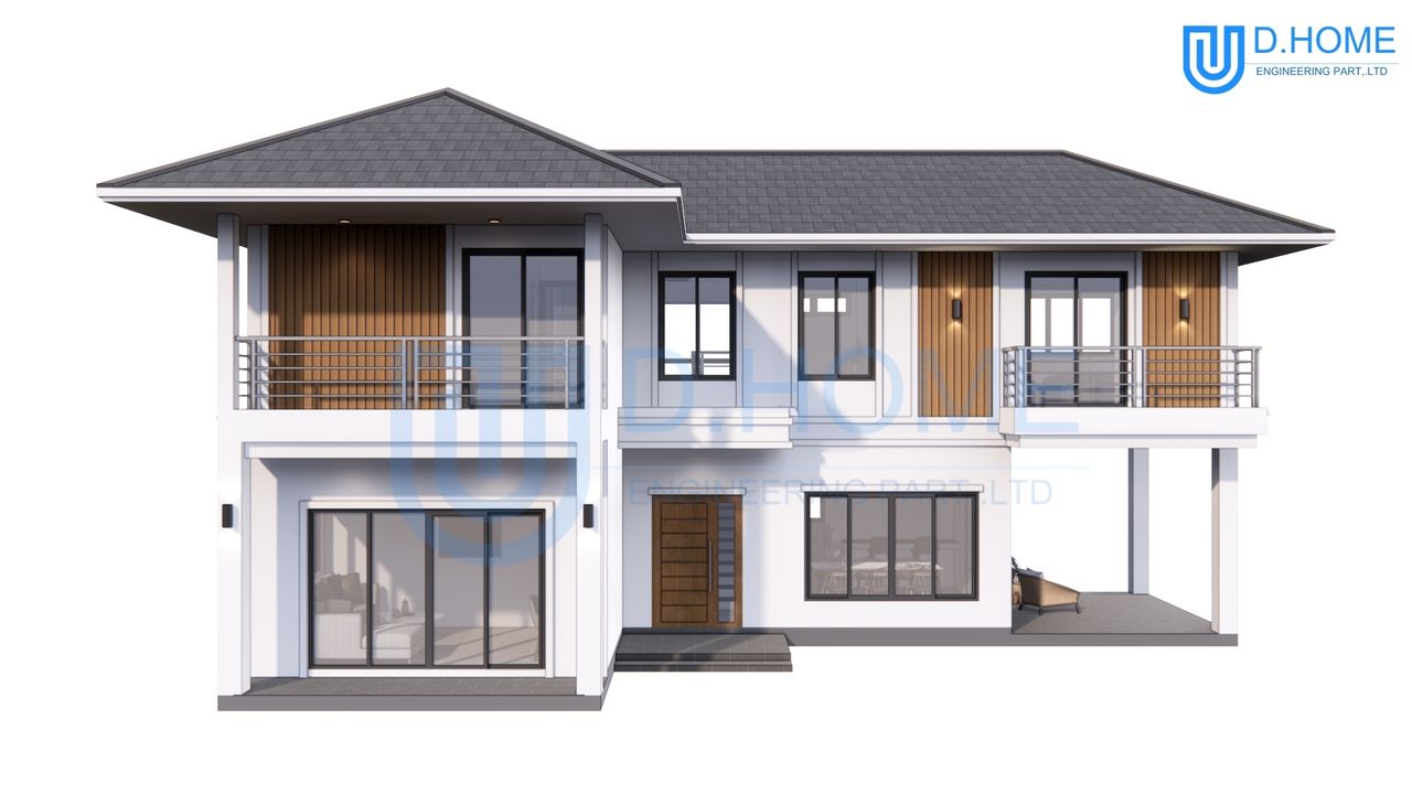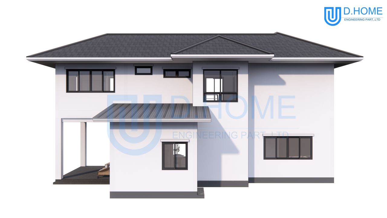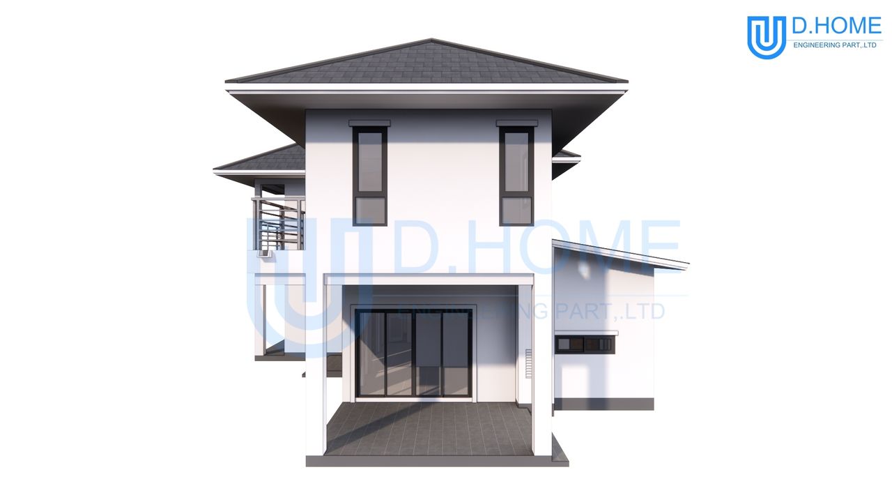 แบบบ้านพร้อมก่อสร้าง : บ้าน 2 ชั้น 3 ห้องนอน 3 ห้องน้ำ 1 ห้องรับแขก 1 ห้องครัว