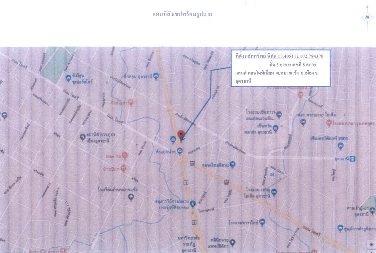 รายละเอียดเลขที่เอกสารสิทธิ์ : 8/74 อุดรธานี อำเภอเมืองอุดรธานี ตำบลหมากแข้ง