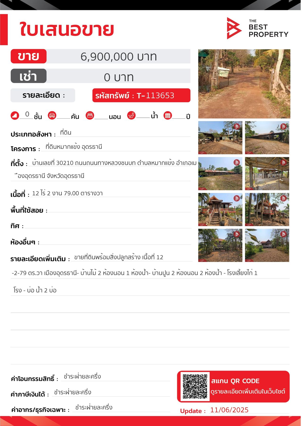 รายละเอียดเพิ่มเติม : ขายที่ดินพร้อมสิ่งปลูกสร้าง เนื้อที่ 12-2-79 ตร.วา เมืองอุดรธานี