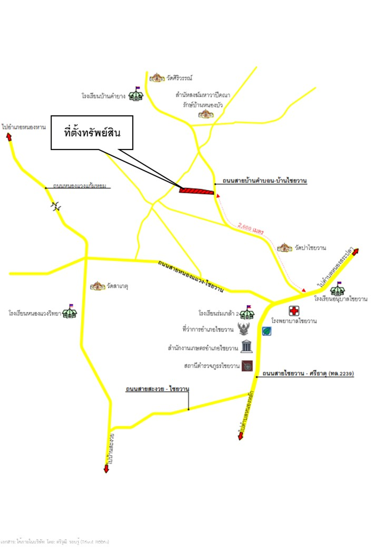 ที่ตั้ง : ที่ดินเปล่า (ที่นา) ห่างจากถนนสายไชยวาน-ศรีธาตุ (ทล.2239) ประมาณ 2.6 กม. ทรัพย์อยู่ด้าน ซ้ายมือ