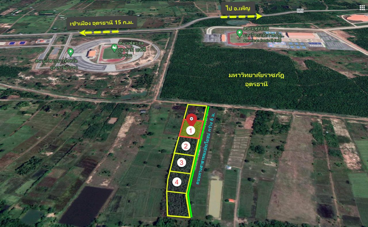 ขายที่ดิน 2 ไร่ ใกล้มหาวิทยาลัยราชภัฏ อุดรธานี สามพร้าว สนามฟุตบอล อุดรธานีเอฟซี ศูนย์อนามัย 8 อุดรธานี