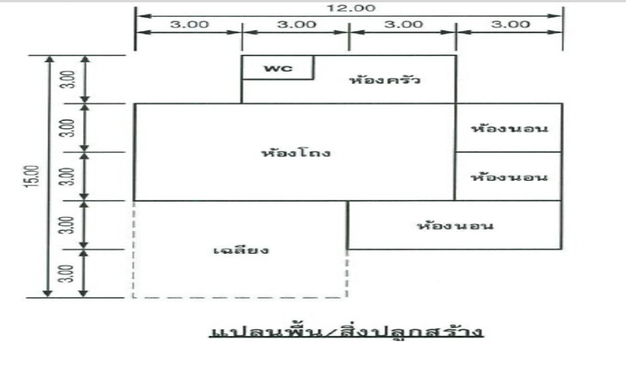 • บ้านเดี่ยวชั้นเดียว เลขที่ 277 หมู่ 1 พื้นที่ใช้สอย 180.0 ตร.ม. หน้ากว้างอาคาร 12 ม. (3 ห้องนอน 2 ห้องน้ำ 1 ที่จอดรถ)