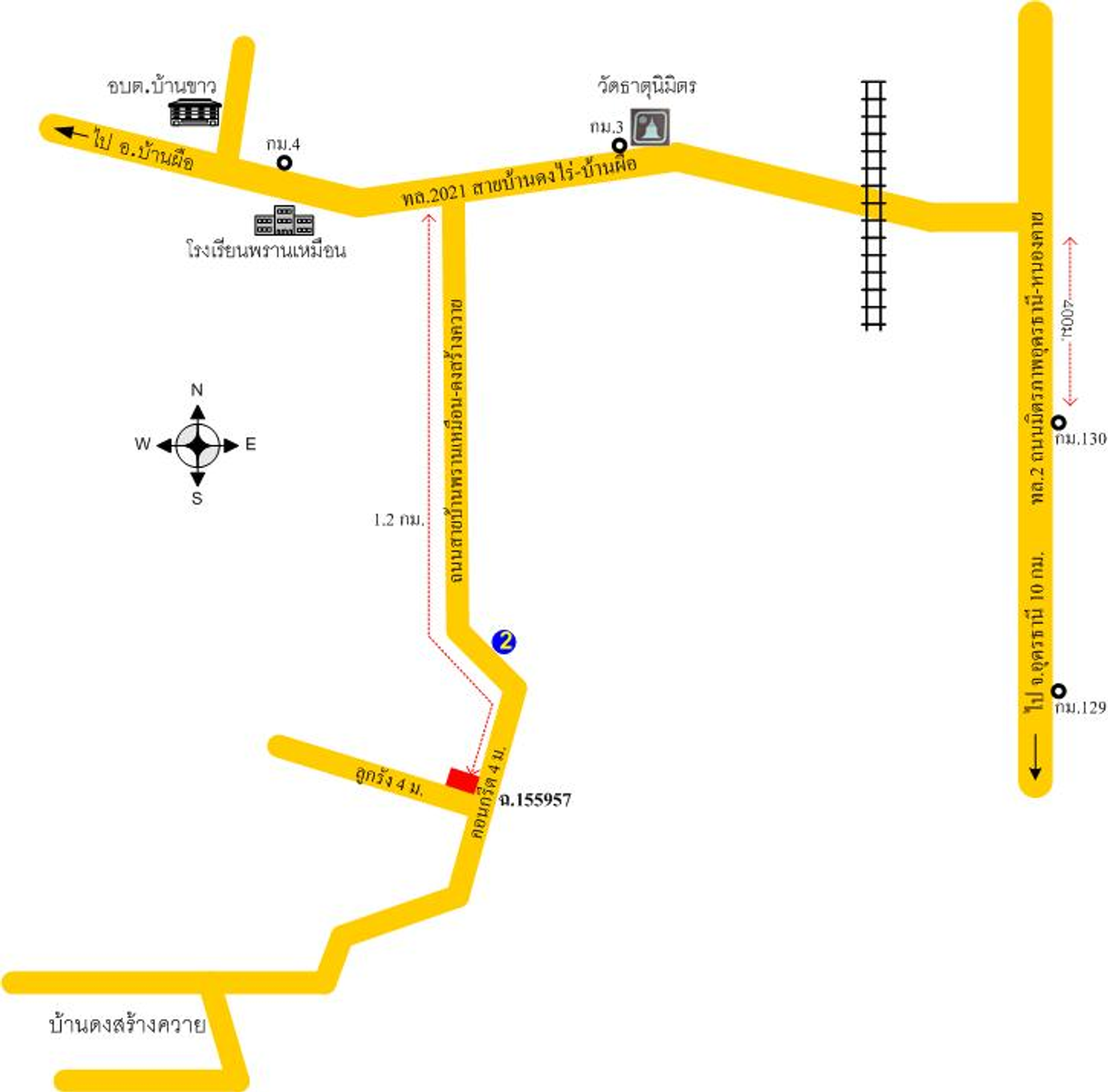 ที่ตั้ง : เลขที่ 97 หมู่ 3 ถนนบ้านพรานเหมือน-บ้านดงสร้างควาย ต.นากว้าง อ.เมืองอุดรธานี จ.อุดรธานี แยกจากถนนสายบ้านดงไร่-บ้านผือ มาที่ตั้งทรัพย์ ประมาณ 1.2 กม.