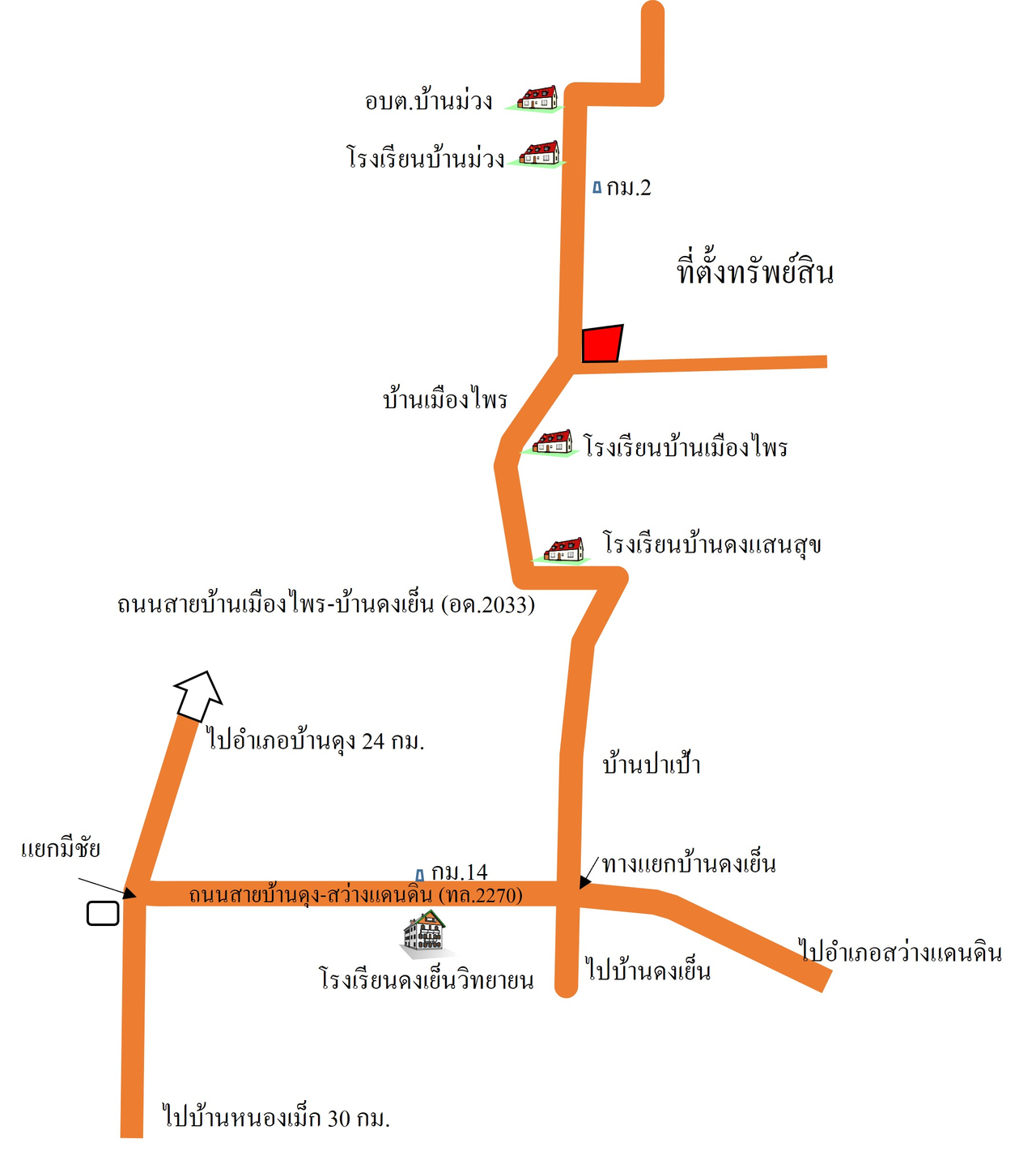 ที่ตั้ง : ที่ตั้งเลขที่ 126, 72 หมู่ 2 ชุมชนบ้านเมืองไพร ต.บ้านม่วง อ.บ้านดุง จ.อุดรธานี แยกจากถนนสายบ้านดุง-สว่างแดนดิน (ทล.227) กม.14 เข้ามาถนนสายบ้านเมืองไพร-บ้านดงเย็น (อด.2023) ประมาณ 10.8 กม.