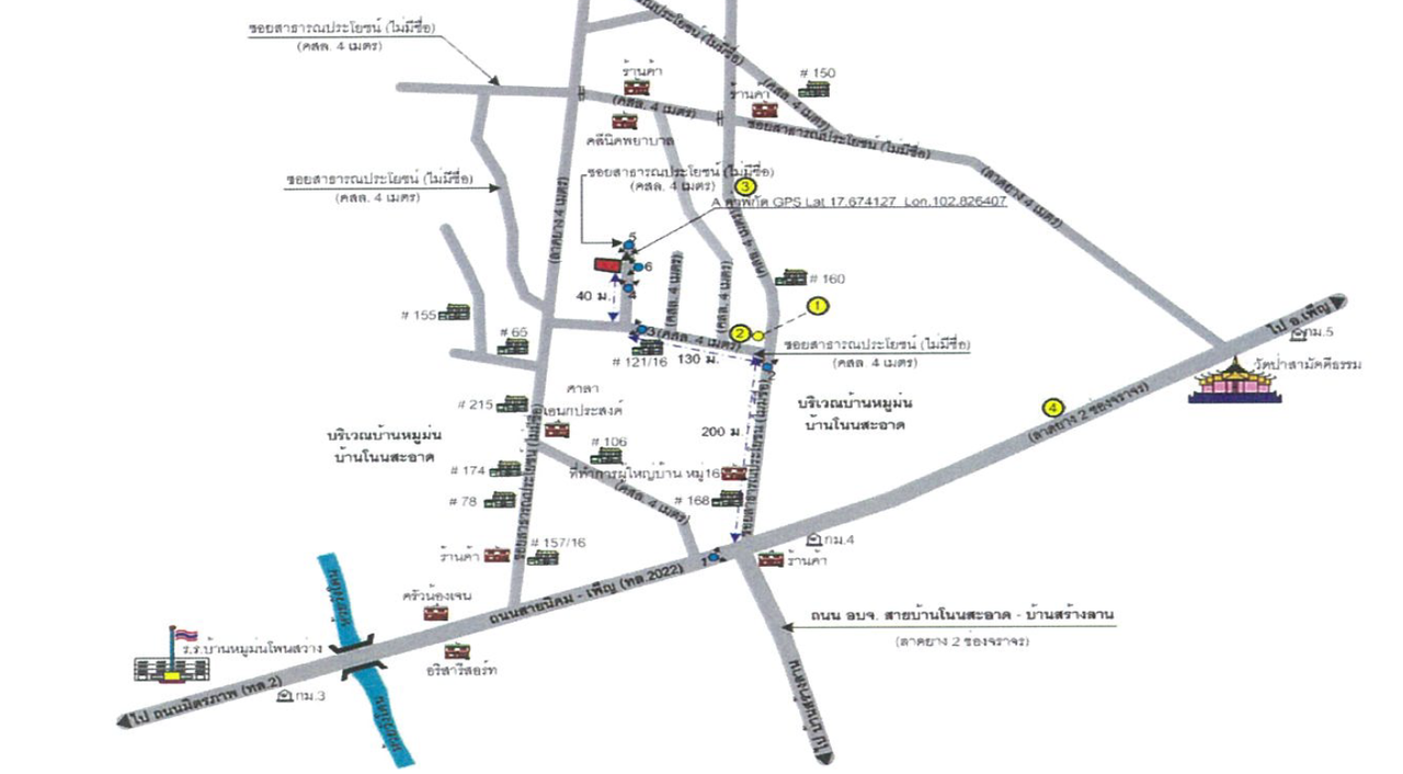 ที่ตั้ง : เลขที่ 234 หมู่ที่ 7 บ้านหมูม่น ห่างจาก ทล.2022 (ทล.2-เพ็ญ) กม.3+700 ระยะ 450 เมตร