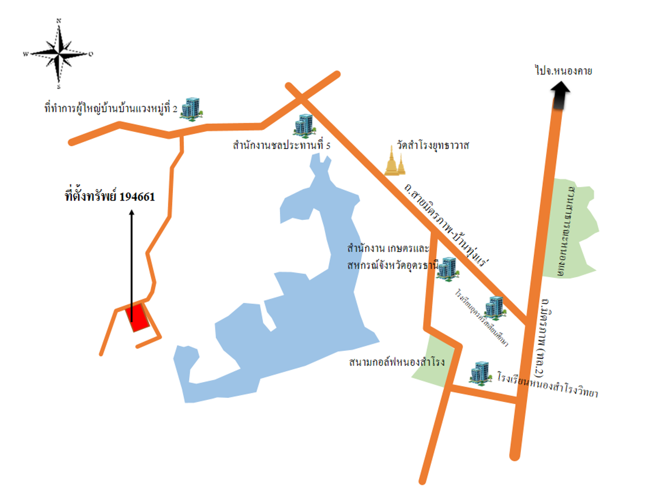 ที่ตั้ง : ถนนบ้านหนองแวง-บ้านหนองตอ มาจากแยกโรงเรียนหนองสำโรงวิทยาประมาณ 1.5 กม.