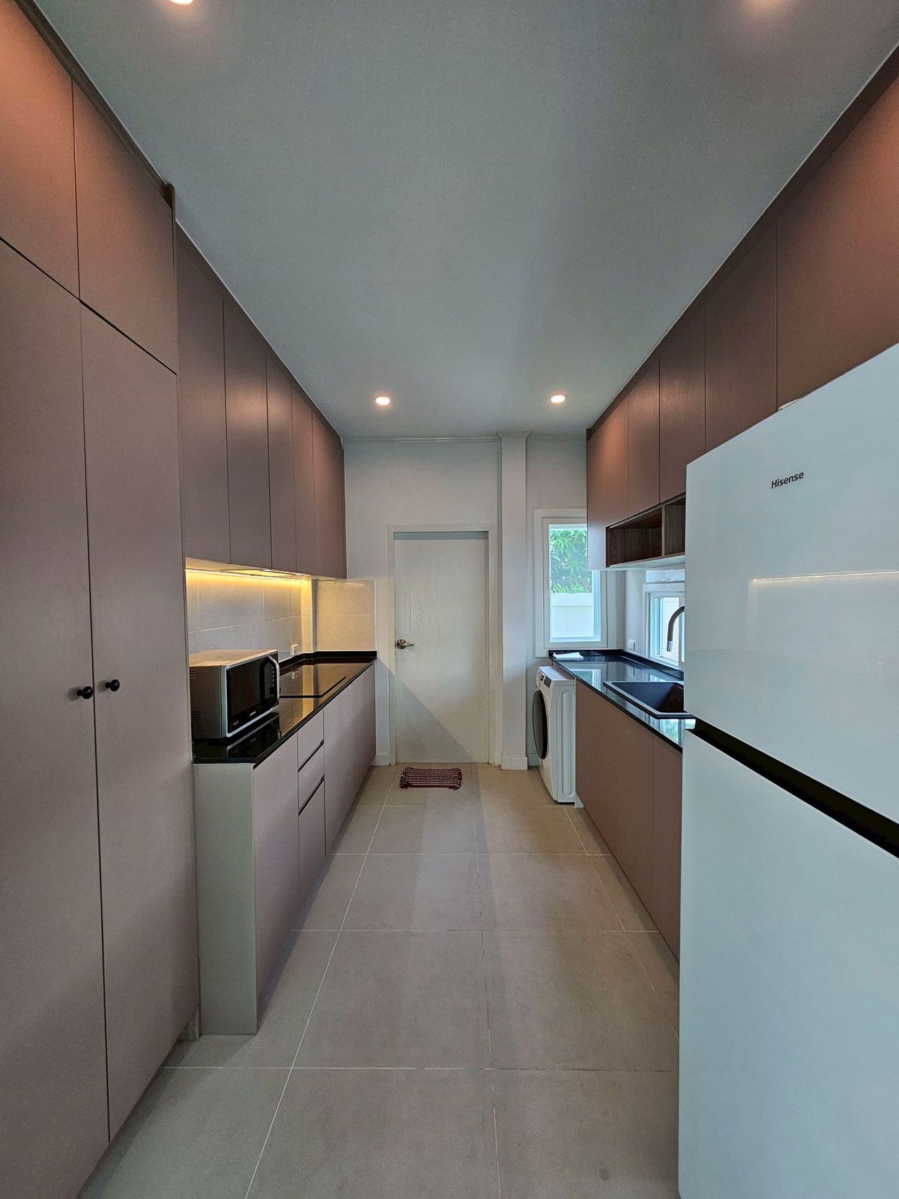 -ครัว Build In เต็มระบบ ฮูดดูดควันซ่อน ซิงค์ล้างจาน เคลือบหินอ่อน เครื่องซักผ้า+อบ