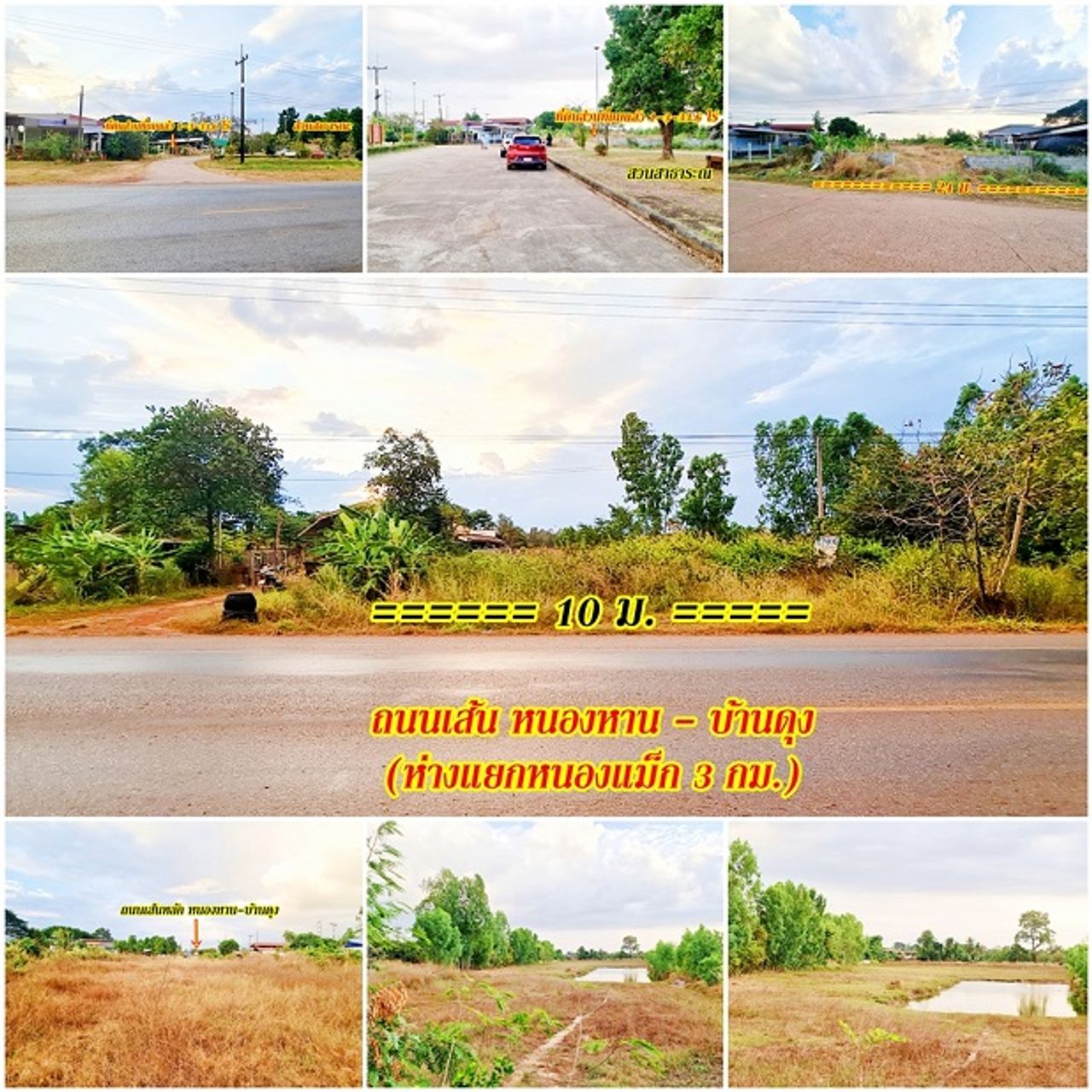 ที่ดินราคาถูกมาก ทำบ้านสวน.เกษตร ถมไว้บางส่วน ติดถนน 2ด้าน เส้นหลักหนองหาน-อ.บ้านดุง และเส้นรอง ห่างแยกหนองแม็ก 3กม. น้ำ-ไฟพร้อม อยู่ในตัวหมู่บ้าน เมืองอุดร